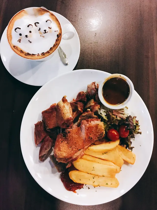 OpenRice 上看到這可愛可愛的3D coffee art就忍不住硬抓朋友來店員說只有cappuccino才有這3D coffee art,而且是6點前才能提供。她可能看到我超失落的樣子不忍心就說:看在今天不忙的份上,就幫你做一杯。真的是好貼心!好感動哦!咖啡送來的時候真的開心得不得了!超可愛的!我跟朋友拍了n張照後才開始品嚐這用心做的cappuccino,味道其實還蠻普通的。不過怕苦的我喝這杯也不用加糖,很ok哦!晚餐點了半份豬手。外層的皮沒有脆脆的,有改進的空間。不過肉還蠻嫩,也不會很咸,不錯吃。除了豬手還點了vegetarian pasta, 味道稍微太淡了一點,加點黑椒跟要鹽巴會更好。這店的服務一流,加上寧靜環境,舒適的佈置,要找地方看書或跟朋友聊天會是個不錯的選擇哦!查看更多