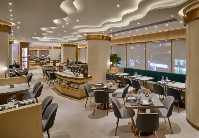坐拥维港景色的西式餐厅,座位舒适,装横有格调,设有半自助午餐,可任食沙津及甜品。