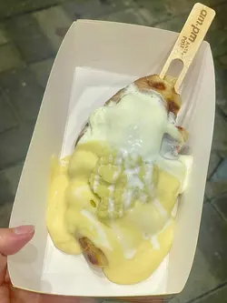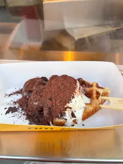 㖊日(10-5-2025 Sat)晏昼,同老公睇完戏,天气有啲翳热,想饮或食少少嘢,行过呢喥,记得佢除咗梳乎厘外,重有软雪糕,奶昔,于是走嚟买,嚟到时见到有造型似雪条嘅牛角窝夫,于是睇有咩味同价钱,都系$38.00起,D24榴梿牛角窝夫就$40.00,我见到话7周年,牛角窝夫$28.00,平$10.00㖞,于是买牛角窝夫而放弃雪糕,奶昔,到买飞,我就要D24榴梿牛角窝夫,收银$40.00。我问唔系$28.00咩?佢答星期一至五系。噢,我睇漏眼,咁好啦,照要啦。等咗几分钟就整好,食落,外脆内软嘅牛角窝夫暖暖地,配唔太冻嘅D24榴梿cream,感觉都唔错嘅。题外话:呢喥价钱比起葵涌广场‘’九鸟‘’戟嘅平(可参考2023年6月18日刊登嘅https://www.openrice.com/zh/hongkong/review/yeah-%E4%B8%8D%E4%BC%BC%E9%A0%90%E6%9C%9F-e4862782呢篇食评),可能“九鸟”戟始终要俾商场管理费啩。上次食评系2018年1月3日刊登嘅呢篇:https://www.openrice.com/zh/hongkong/review/%E5%94%94%E5%80%BC-e2946306…查看更多