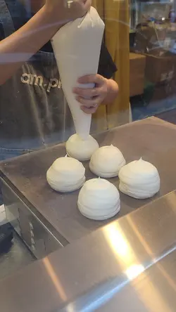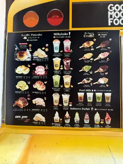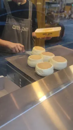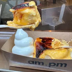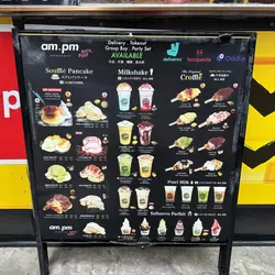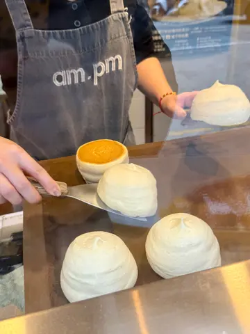 am.pm 这间甜品小店最近真系烧到好多人心里去🔥店外signature 黄巴士造型,一看就知道系「打卡一流」,超级抢眼,仲未食已经感觉到幸福味满满☺️难怪 Running Man 成员、连发哥都推介,人气真系唔系浪得虚名❣️🍓 奶油草莓梳乎厘入口的瞬间简直系云朵感爆棚🤩 梳乎厘软绵绵的,每一口都像是被棉花糖轻抚舌尖🤤 上面铺满新鲜士多啤梨酱,酸酸甜甜中和了奶油的浓郁,整体好有层次感,唔会腻👍🥐 黄金布丁烧牛角包窝夫呢道系am.pm 的创意之作😆 香脆嘅牛角包窝夫,表面布满香浓嘅金黄布丁酱,甜中带焦香,令人忍唔住一啖接一啖😋 🥤 培茶珍珠牛乳不得不提佢哋嘅饮品系列,呢杯培茶珍珠牛乳真系醇香满分✅ 培茶香气低调但持久,珍珠烟韧有嚼劲,配合顺滑牛乳,饮落去好顺口,有种日式小贵气感😎 am.pm 唔止系「打卡热点」,更系甜点实力派👍 无论系氛围、卖相定味道都用心到位❤️ 虽然要排队,不过喺黄巴士旁边等都感觉幸福🥰 …查看更多