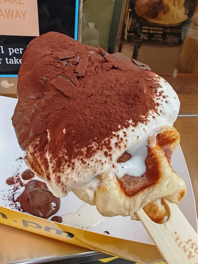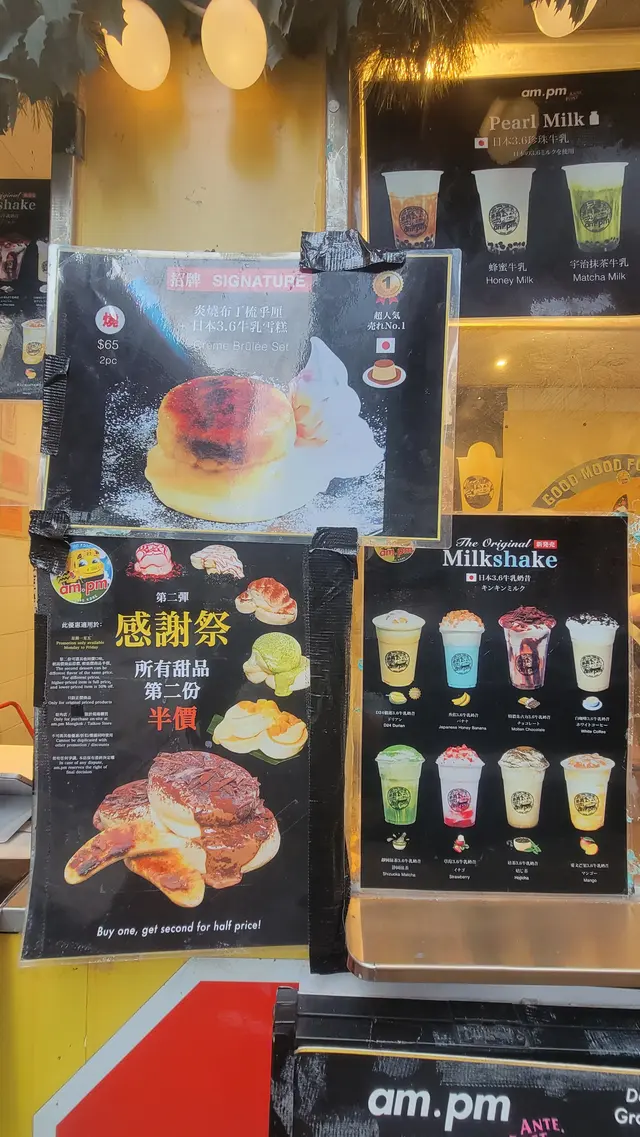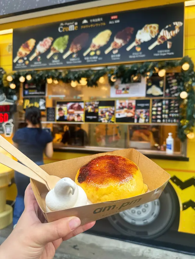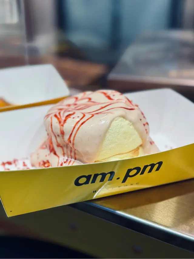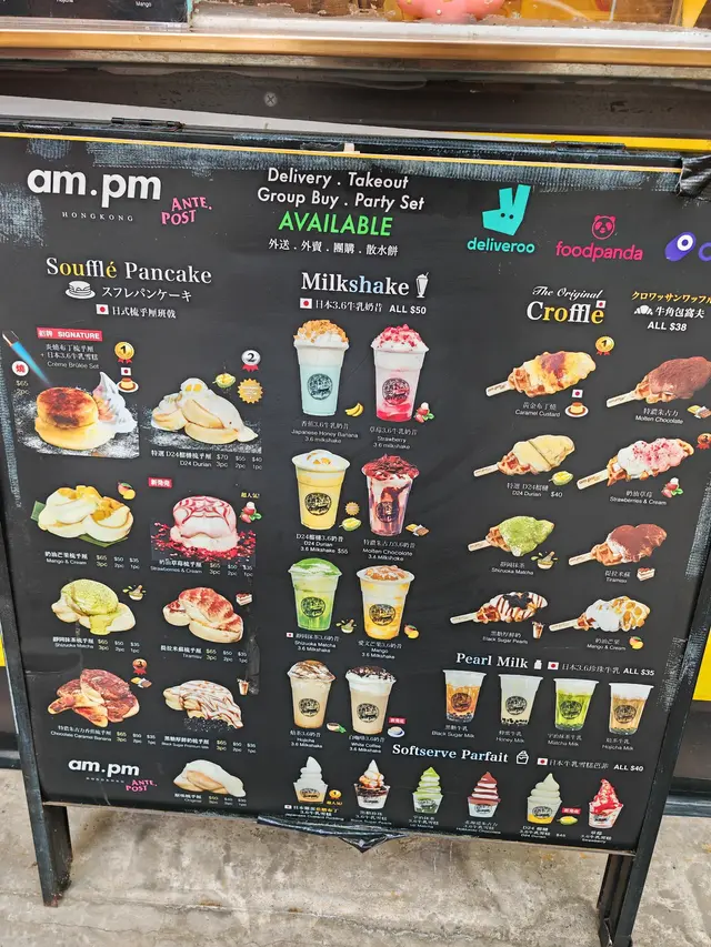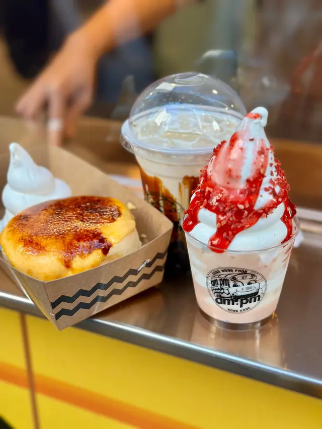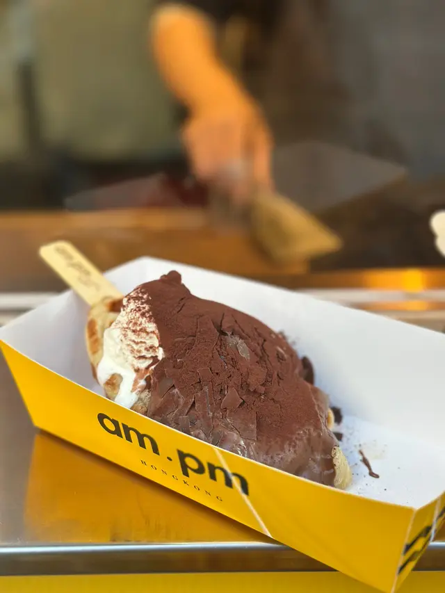 行過油麻地,比 am.pm 門口既香味吸引住,呢度主打街頭甜品,全部都係即叫即製。最正係可以透過玻璃窗見到佢地即場製作疏乎厘,睇住d蛋漿慢慢發起,變成一個個肥嘟嘟既疏乎厘,感覺真係好治癒😍,忍吾住即刻停低買黎食!.首先叫左個 特濃朱古力香蕉疏乎厘 ($50) 🍫。因為係即場製作,拎上手仲係熱辣辣既!兩塊疏乎厘疊高高,空氣感十足,震騰騰咁。面頭淋上特濃朱古力醬,再加埋朱古力粉同朱古力碎,簡直係朱古力控既天堂。頂部仲有一層焦糖香蕉🍌,脆脆地既焦糖配埋軟綿綿既疏乎厘,入口即溶,正!.另外又叫左個 D24榴槤牛角包窩夫 ($40) 🥐。個窩夫烘得好鬆脆,咬落去口感好好。重點係窩夫上面放滿左榴槤肉同榴槤蓉,真係好足料!每一啖都充滿濃郁既榴槤香味,配埋熱辣辣既窩夫,真係無得輸🤤。.野飲方面,叫左杯 宇治抹茶珍珠牛乳 ($35) 🍵。抹茶味幾突出,回甘得黎吾會太苦,同順滑既牛乳好夾。d珍珠煮得岩岩好,煙煙韌韌,一路行一路飲好爽。.而黑糖珍珠牛乳 ($35) 🧋。黑糖紋掛杯好靚,打卡一流。飲落去黑糖味香濃但吾會死甜。…查看更多