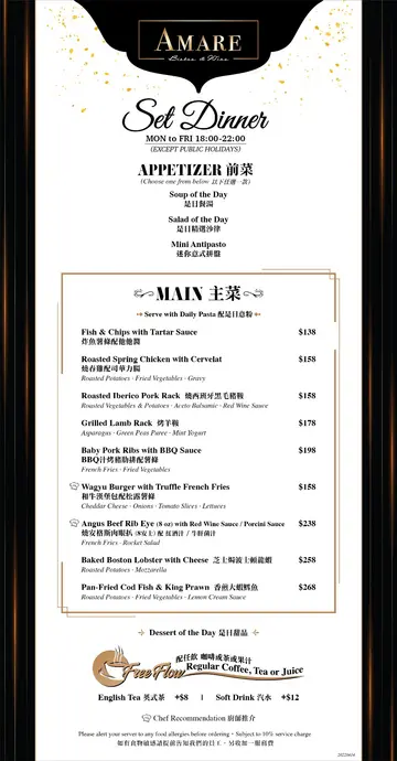 假日去康城探朋友,就去下新嘅跨湾大桥睇下打下卡,可能系红日,原来都几多人;跟住就拣选埋晚餐嘅地方,海傍都几多几chill嘅餐厅,带宠物仲可以坐户外添,最后因为本身想食嘅都太多人,所以就trytry依间💬 烧安格斯肉眼排 配红酒汁order五成熟,嚟到都冇overcooked 👍 系我最钟意嘅外香内嫩,入口满满牛味,沾上红酒汁同少少盐,红酒嘅甘中带点海盐嘅咸,令块牛扒升华❤️ 佢配菜有薯条,满足我食热气嘢嘅欲望🤭回头食: ⓨⓔⓢ💬 蟹肉南瓜意大利饭意大利饭整体都几好味❤️,南瓜汁好creamy,意大利饭软硬适中,仲有唔少蟹肉,佢另外仲加咗黑松露同少少沙津菜点缀,黑松露嘅香配上蟹肉真系相映成趣🫰回头食: ⓨⓔⓢ💬意大利芝士蛋糕手指饼浸咗几香嘅咖啡酒,不过意大利芝士较水状,似未雪硬咁,硬身少少比较好味,甜品嚟讲算系冇乜特别🥺回头食: ⓝⓞ💬开心果班戟 配松露枫糖浆班戟较薄身,上面有一球开心果雪糕,雪糕重开心果味但唔太滑,试有沙沙地开心果粒系入面咁,然后最扣分系个松露枫糖,枫糖味被松露遮盖,仲入口咸中带少少甜,感觉食紧咸点🫣;朋友仲话似系食完岩先个意大利饭嘅味道,有种互相呼应嘅感觉....我觉得唔太夹喇个松露同开心果;仲有上面嘅马卡龙,食落似原味带略甜糖胶感觉🫥失望回头食: ⓝⓞ整体嚟讲,餐厅,食紧嘅时候有入座嘅客人同店员有小风波,当中一位男店员态度较差,服务我就畀得低啲喇;而环境都几有feel,晚餐时段有小蜡烛😍 岩哂情侣嚟食;至于食物就较推介主菜,甜品就.....😂可能我未试到岩我口味嘅...如果附近有其他选择,我prefer试埋其他餐厅再回头食喇 哈哈🤭🫡❤️AMARE Bistro and Wine❤️将军澳澳南海岸唐俊街23号MONTEREY Place 地下G02号舖❤️2576 2398…查看更多