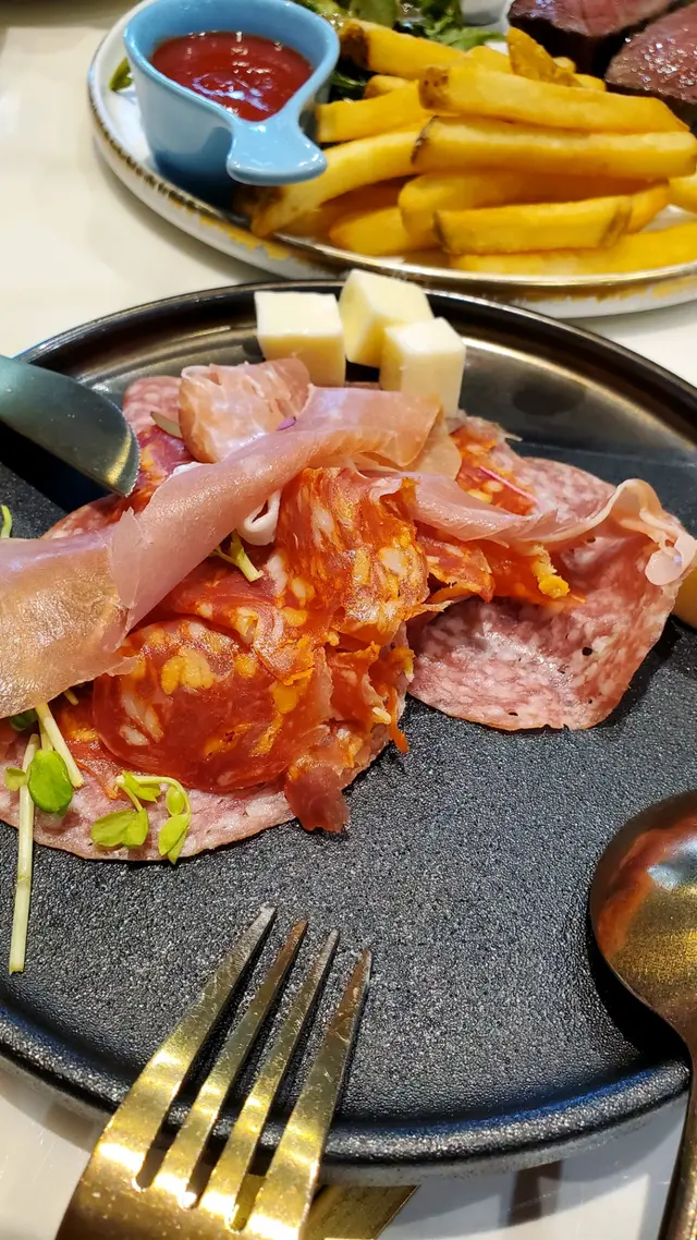 假日去康城探朋友,就去下新嘅跨灣大橋睇下打下卡,可能係紅日,原來都幾多人;跟住就揀選埋晚餐嘅地方,海傍都幾多幾chill嘅餐廳,帶寵物仲可以坐戶外添,最後因為本身想食嘅都太多人,所以就trytry依間💬 燒安格斯肉眼排 配紅酒汁order五成熟,嚟到都冇overcooked 👍 係我最鍾意嘅外香內嫩,入口滿滿牛味,沾上紅酒汁同少少鹽,紅酒嘅甘中帶點海鹽嘅咸,令塊牛扒昇華❤️ 佢配菜有薯條,滿足我食熱氣嘢嘅慾望🤭回頭食: ⓨⓔⓢ💬 蟹肉南瓜意大利飯意大利飯整體都幾好味❤️,南瓜汁好creamy,意大利飯軟硬適中,仲有唔少蟹肉,佢另外仲加咗黑松露同少少沙津菜點綴,黑松露嘅香配上蟹肉真係相映成趣🫰回頭食: ⓨⓔⓢ💬意大利芝士蛋糕手指餅浸咗幾香嘅咖啡酒,不過意大利芝士較水狀,似未雪硬咁,硬身少少比較好味,甜品嚟講算係冇乜特別🥺回頭食: ⓝⓞ💬開心果班戟 配松露楓糖漿班戟較薄身,上面有一球開心果雪糕,雪糕重開心果味但唔太滑,試有沙沙地開心果粒係入面咁,然後最扣分係個松露楓糖,楓糖味被松露遮蓋,仲入口咸中帶少少甜,感覺食緊咸點🫣;朋友仲話似係食完岩先個意大利飯嘅味道,有種互相呼應嘅感覺....我覺得唔太夾喇個松露同開心果;仲有上面嘅馬卡龍,食落似原味帶略甜糖膠感覺🫥失望回頭食: ⓝⓞ整體嚟講,餐廳,食緊嘅時候有入座嘅客人同店員有小風波,當中一位男店員態度較差,服務我就畀得低啲喇;而環境都幾有feel,晚餐時段有小蠟燭😍 岩哂情侶嚟食;至於食物就較推介主菜,甜品就.....😂可能我未試到岩我口味嘅...如果附近有其他選擇,我prefer試埋其他餐廳再回頭食喇 哈哈🤭🫡❤️AMARE Bistro and Wine❤️將軍澳澳南海岸唐俊街23號MONTEREY Place 地下G02號舖❤️2576 2398…查看更多