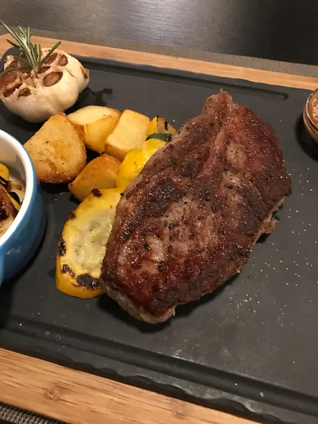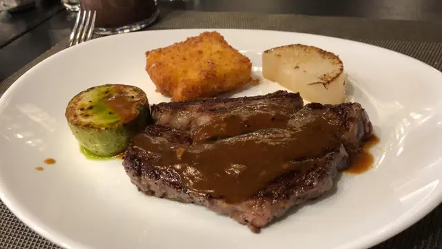 個扒美國肉眼扒配意大利粟米及銀魚柳汁