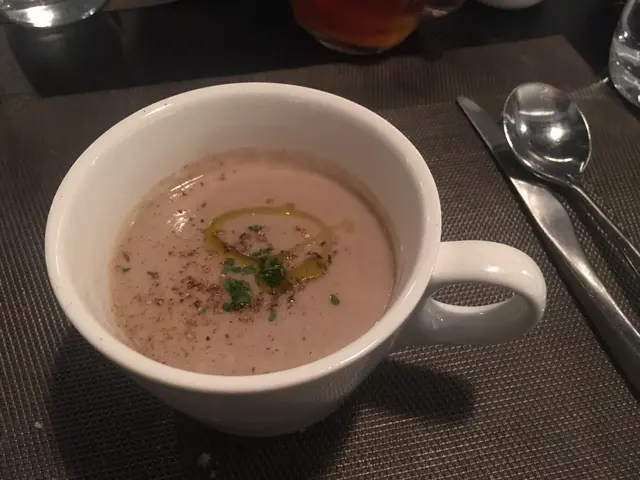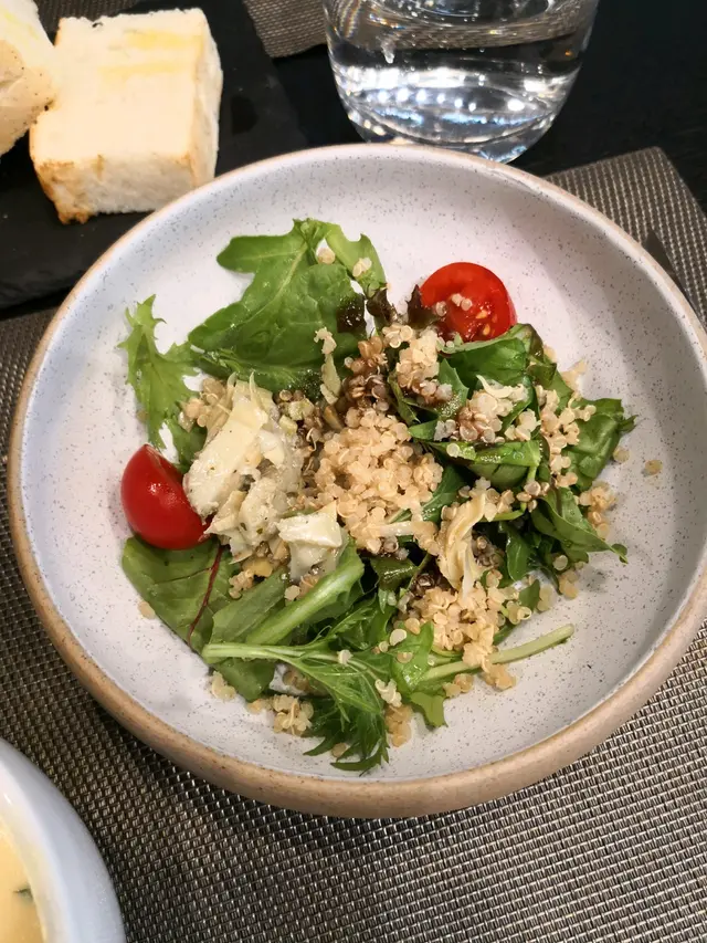 得閒又去紅磡搵下朋友食LUNCH, 係OPENRICE 揀黎揀去..揀到呢間.係黃埔邊邊位, LUNCH 都唔會太多人, 座位闊落..LUNCH價格都幾進取, $108 起.點餐後先黎前菜, 包湯同SALAD.個湯有D頹, 明明我見到其他食評既湯都唔差..點解我呢個咁罐頭既?!呢個係藜麥SALAD. 不過就欠缺左D 汁, 冇乜味~初時重上漏左我個份TIM... 令我一度懷疑我個餐係咪冇SALAD..@@"呢個朋友叫既.龍蝦汁海鮮闊條麵~ $108.賣相唔錯, 朋友話OK,.我冇試, 但見個汁都幾吸引~~呢個我叫既: 松露汁扒西班牙豬扒配薯蓉. $138呢個一上台時,我朋友眼甘甘呀! 哈~份量夠, 又好厚. 同埋好香. 咁大份我當然分左D 畀朋友啦~ 骨位燒到好香...肥膏同肉既比例令到塊扒好BALANCE, 唔會乾又好香.旦個汁就結身左, 同埋我以為會係松露磨菇汁, 佢似係燒汁底~餐飲大大杯.重有甜品, 應該係MOVENPICK 黎既. 見到有D 云尼拿籽.重驚喜係雪糕上面有片風乾橙, 單食有D 苦, 應該係橙皮, 但MIX埋雪糕食就係另一個層次, 即時合體左~睇個甜品感覺到餐廳幾有HEART. 可再試下~查看更多