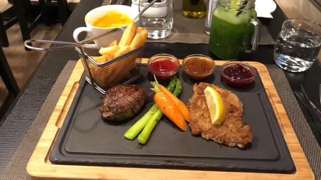First time to visit ambers table and I gotta say was surprised by how good the food is !! We went for the set dinner that includes a starter at your choice ,healthy apple and kale juice ( with a mini wagyu burger that tasted yummy ! We thought it was quite innovative ), pumpkin and crab meat soup, steak with fries and a brownie to finish off ! we enjoyed our dinner very much and it’s very good value for money , really nice friendly staff with a cosy atmosphere ! We will definitely come back for sure , keep up with the good work !查看更多