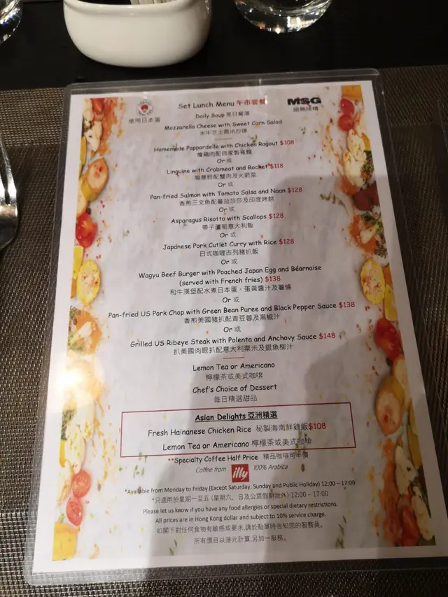朋友仔生日見到呢間餐廳做生日優惠有free dessert 所以就試下啦我地叫佢地係牛牛set dinner (Angus beef promotion )個set 好豐富頭盤有生牛肉/鵝肝帶子餐湯南瓜蟹肉湯主菜有三種:鱈魚/牛臉配薯蓉/維也納牛仔同牛柳飲品巧特別系羽衣甘藍汁加mini burger 巧special 同健康仲有dessert Chocolate brownie 配movenpick 雪糕真心超值、超滿足!見佢地環境舒適坐得幾舒服三幾知己吹下水Service 又唔rush 吹水太high 有D冇映相另外見到佢地用illy coffee 酒店水凖幾落本!見到隔離枱叫左個豬手巧正正!下次朋友仔生日可以order 查看更多