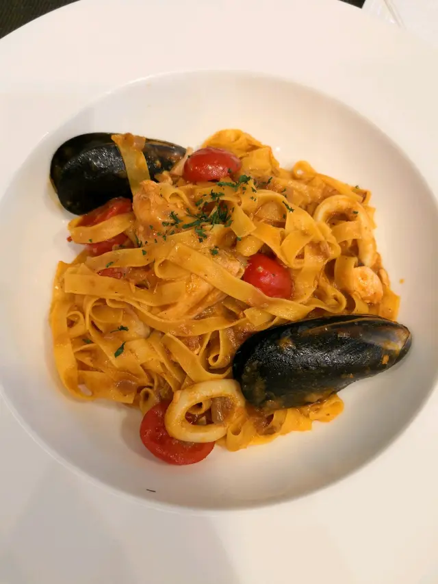 依間西餐廳估唔到會有高水準嘅表現。叫咗一個Pizza,一個墨魚汁飯,同埋一個意粉。😋😋最好食嘅係個Pizza,博得來脆脆地,調味條啦好恰當。👌🏻墨魚飯就一般啦,不過個擺上位都幾得意黑色嘅飯上面有插着一棵小香草做點綴,好似一盆盆栽咁樣好得意。☺️意粉都做得OK。我見到佢仲有其他dinner嘅set,價錢就會二百幾蚊,睇落去都唔錯,下次可以一試。今次散叫人均都係百零蚊,好抵食😁總括嚟講呢間就一定性價比嘅西餐廳😋查看更多