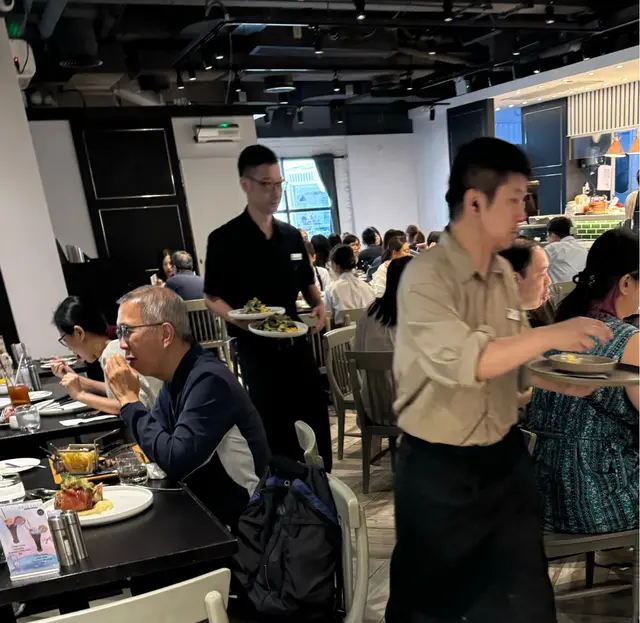 與友人相聚,推介呢間餐廳Work day lunch min $148 +10%, 對佢係有啲expectation 嘅去到坐低發現座位非常非常之迫, 感覺已經打八折。沙律上檯見有兩塊燒牛肉, 擺盤係唔錯嘅。沙律菜係新鮮,燒牛肉就普通貨式。之後pasta上檯, 蝦係彈牙但質量只算合格。說好的tiger prawn 只係普通白灼蝦大小,可接受但唔值呢個價位最後餐飲杯檸茶,只有色而無茶味,完全唔掂Conclusion - 一次便夠…查看更多