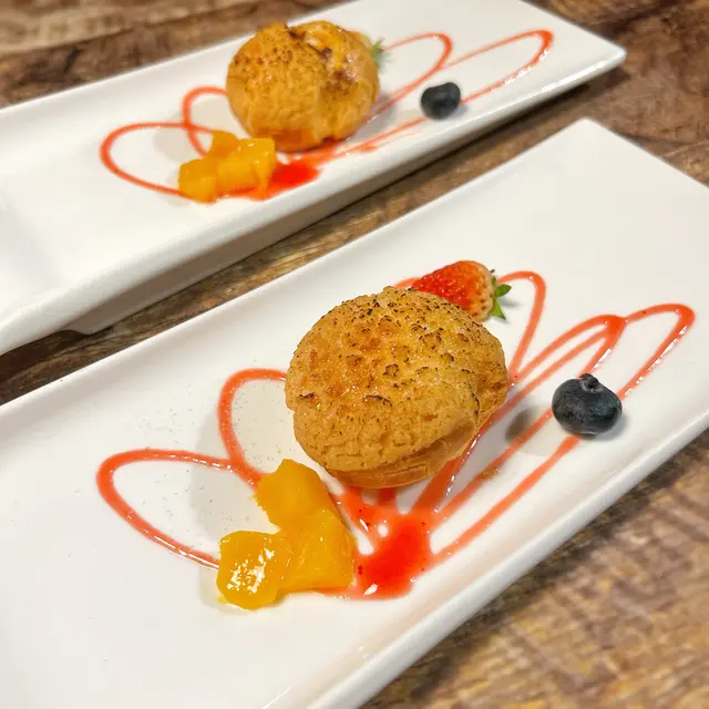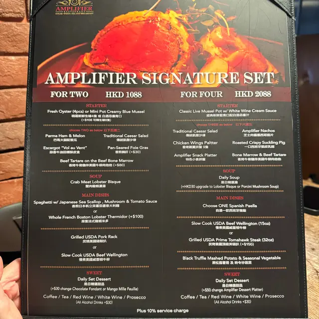 第一次嚟既時候試咗西班牙乳豬南瓜risotto,好食到驚為天人!所以約埋朋友嚟聚餐,點知第二次有啲失水準😂我地叫咗二人餐,加個西班牙乳豬。二人餐可以揀生蠔或者青口,我地揀咗生蠔。唔算大隻但幾甜幾fresh。龍蝦湯好好味,唔會有龍蝦苦澀味但又好香濃鮮甜🤤❣️蒜香牛油田螺酥皮盒發揮正常,酥皮唔算好酥脆但幾香牛油味。❣️香烤牛骨髓伴美國牛柳肉他他幾好味,牛肉他他撈埋油香四溢既牛骨髓味道豐富好滿足👍配埋薄脆麵包口感加分❣️燒西班牙脆皮乳豬脆皮乳豬配薯片同紅桑子,好得意既配搭!食落口感味道豐富得黎好和諧。但個人覺得上次risotto配既乳豬更好食,可能因為大塊啲同埋唔會比個醬汁同配料搶咗乳豬本身既香味🥹❣️慢煮美國威靈頓牛柳同個酥皮盒一樣,威靈頓牛柳既酥皮唔酥脆,好厚實。蘑菇蓉加埋唔脆既酥皮一齊食,口感麻麻,一patpat咁。牛柳有啲太熟,不過都算淋身有牛肉香味。❣️原隻法式龍蝦米多芝士雜菜焗龍蝦,好大陣青椒味,我真係麻麻🥹唔食青椒朋友要注意‼️-甜品我地食咗焦糖燉蛋加apple flan。焦糖燉蛋發揮正常,脆脆焦糖加creamy燉蛋,好味🤤apple flan都好香口,而且佢既酥皮係脆既!🤣加埋雲呢拿雪糕,一熱一凍好夾。-總結:食物質素只可以話不過不失,普普通通。最正係餐廳有live band,氣氛好好。酒精飲品第二杯半價,就近同朋友黎飲杯chill吓都係唔錯既選擇。順帶一提,呢度sangria好大杯,兩人分都冇問題😂😂😂…查看更多