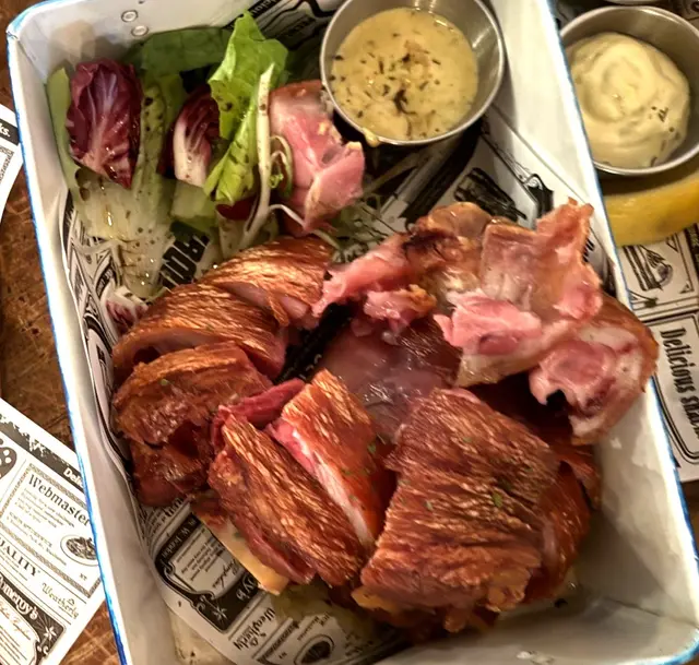 炸啤酒魚柳薯條, 配塔塔醬及茄汁