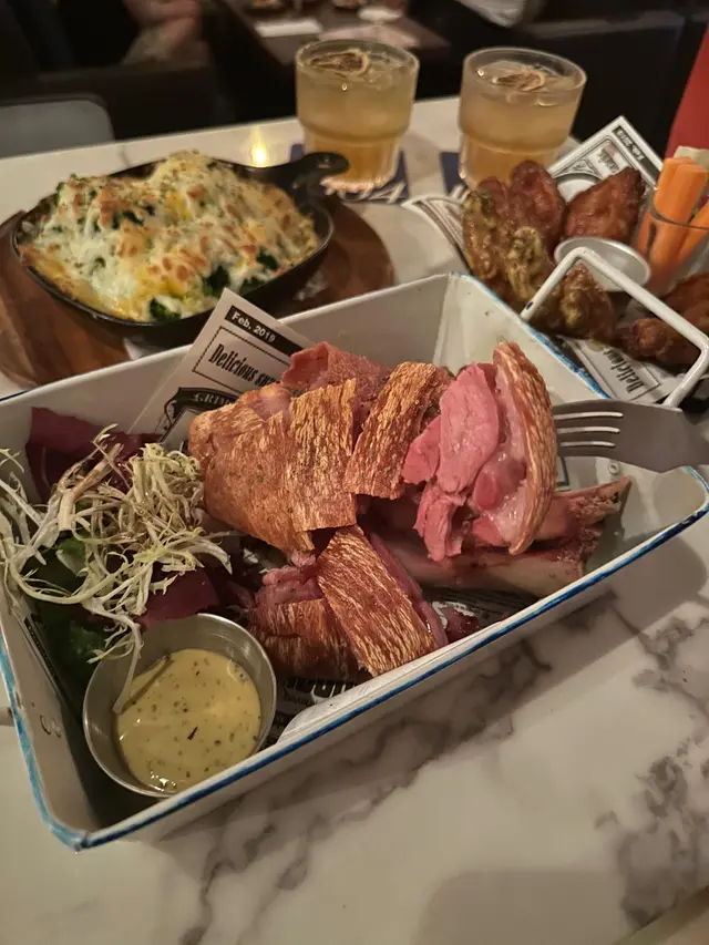 朋友介紹喺Amuse 堂食Order 德國烤豬手即送【 Tipsy Cat 醉檸茶 | 屬於香港 的本土雞尾酒】 2杯!(適用於全日任何時段)話說Amuse有2間店,今日我哋嚟到佐敦上海街呢間分店。呢期推廣嘅[醉檸茶]🥃好有港式風味。飲落真係有檸茶嘅香味,酒味中帶甜味,港女表示唔會太甜,係唔錯嘅推介。到主角出場🐽SCHWEINSHAXE (GERMAN PORK KNUCKLE) $258店員為我地介紹鹹香入味嘅豬手,以蔬菜、香料同高湯慢煮接近3個鐘。再以低溫冷藏,即叫即焗。果然入口新鮮又香脆。伴上德國酸菜、蜜糖芥末醬一齊食,口感層次超豐富!再飲埋酸甜爽口嘅醉檸茶,嘆盡微醺好光!炸啤酒魚柳薯條🍟BEER BATTERED FISH & CHIPS $148魚柳沾上傳統英式啤酒醬,炸起外脆內嫩。薯條外面金黃酥脆,裡面軟綿綿、滿滿的薯味,配個冰凍檸酒,忍唔住食完又飲飲完又食。另外我哋叫咗特色雞翼🐓 SPECIALTY WINGS [BUFFALO, HONEY MUSTARD, WHISKY BBQ]$118-傳統水牛城辣汁 甜辣口味好惹味-蜜糖芥末 結合咗甜、鹹、微辣嘅味道。蜜糖甜味、芥末辛辣和雞翼的鮮嫩完美融合。-威士忌燒烤- 顧名思義就是使用威士忌調製的燒烤醬來烹調雞翼。帶有威士忌的香氣,以及燒烤醬的甜鹹風味,再搭配上雞肉的香嫩多汁,挑戰味蕾親體驗大家逢星期日至四 4 - 8pm, Follow 社交平台 指定食品仲有50% OFF!我撐本地消費。…さらに見る