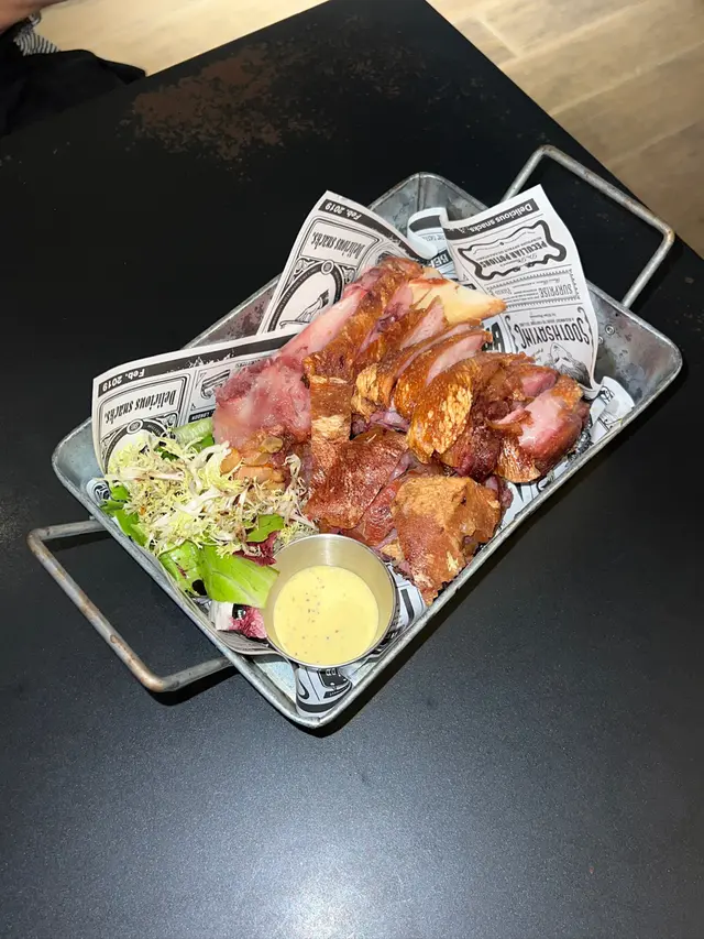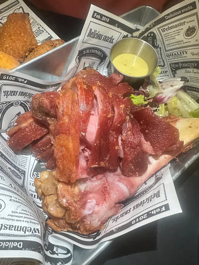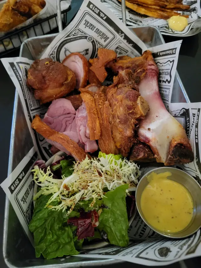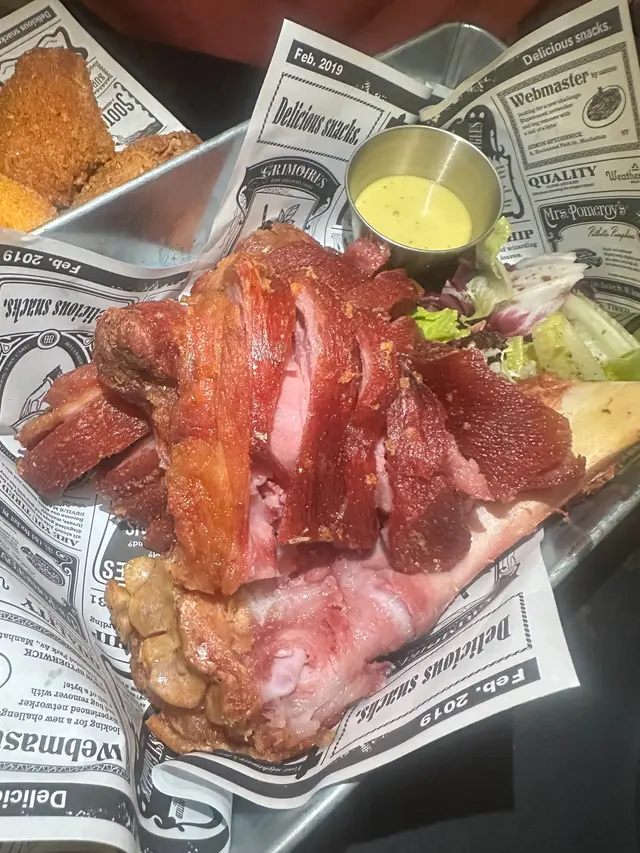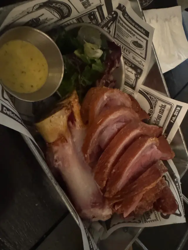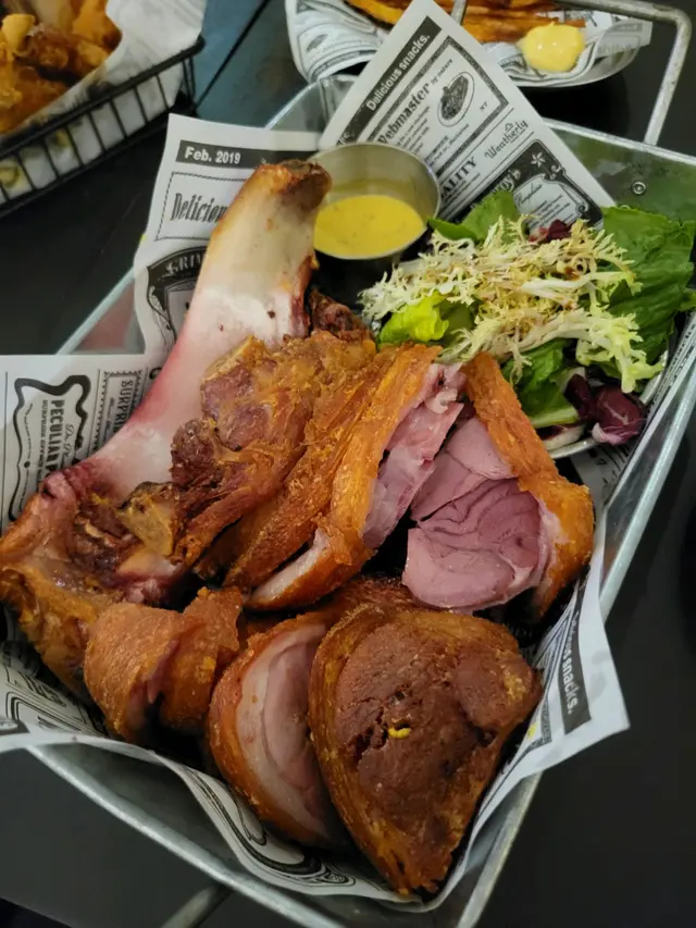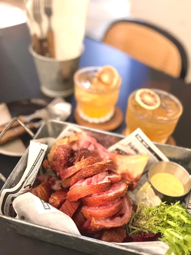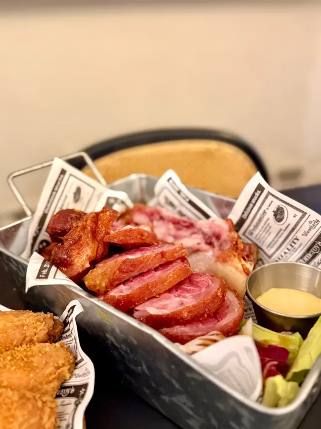 【型格酒吧。咔咔脆豬手】位於深水埗的工業風酒吧外表有種冷調、但巧妙融入一些綠植,讓空間顯得更加平衡和放鬆。地點在不是在深水埗中心點,但也容易找到,非常適合朋友聚會與小酌聊天。❈ 德國鹹豬手HK$258洛神花蜜桃酒 x2 (免費送)豬手外皮烤得酥脆,咬下去有清脆的口感,豬手肉質飽滿有膠質,整體彈牙,帶有煙燻香氣。不會過於油膩。一份量十足,非常適合與朋友分享。最划算就是點豬手會送2杯洛神花蜜桃酒,第一次喝到這個口味的酒,清爽易入口,跟香口食物很搭。❈ 芝士肉醬玉米餅 (雞)HK$118(L)玉米餅上鋪滿熱騰騰的芝士與雞肉燈,芝士味道濃郁而且搭配了蕃茄和辣椒,口味清爽,鹹香度適中。配合酥脆的玉米片吃起來豐富且有層次,適合當作下酒菜。❈小食拼盤 HK168拼盤包括洋蔥圈、芝士條、煙肉腸和雞翼等多款小食,份量均衡且適合多人分享。洋蔥圈炸得恰到好處,外酥內香,芝士條濃郁但不膩,煙肉腸和雞翼口感豐富,鹹香開胃,整體多樣化且味道不錯。註:逢星期日至四 4 - 8PM,Follow IG 即享指定食品 50% OFF…查看更多