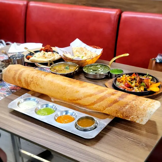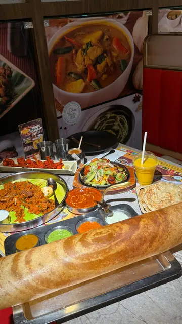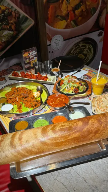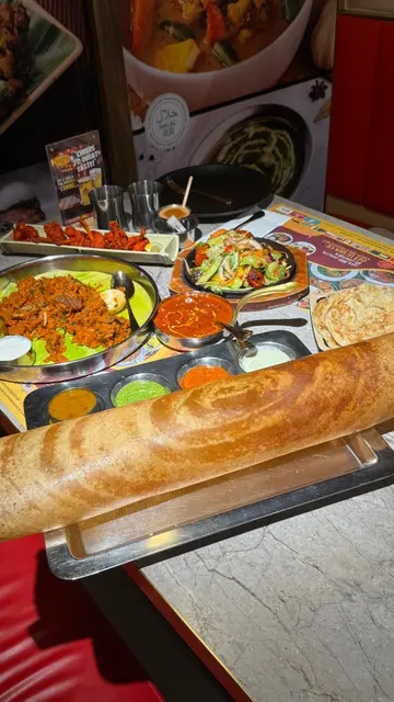 It’s a long one! 🎺 Southern Indian dosa crepe; 🎶 dok-dok bamboo biryani This Indian eatery is honestly a champion, blasted with Indian music videos and laughters from the customers. Most importantly, every dish was so bomb and the red sofa seatings were so comfy, it made me want to stay all night, jk!This hot weather makes me ultra hungry so a bamboo biryani could fuel us up, the staff would pour the rice right at your table by dok-dok-dok tapping on the bamboo container. You could choose chicken or mutton to go with the rice, there were egg, veggies, and an onion yogurt sauce to go with the crabs. It tasted fulfilling and the basmati rice were cooked moist, easy for digestion during hot summer times. Showstopper of the night went to the butter dosa, it was a very long and huge roll of fermented crepe made out of ghee and rice. It was so amazingly delicious, crispy on its edge and chewy at its centre, with bubbly panfried marks over the crepe. Tear off this beauty and dip that into the four sauces of choice: coconut, tomato, mint and lentil. Another signature was their butter chicken masala, man, that was the best butter chicken we have had in HK so far, both of us agreed. Taste was rich, buttery and all-rounded, masala texture was perfect, chicken was tender and grilled. Every spoonful was an enjoyment, of cos you need to spoon that onto a piece of garlic naan, which was freshly prepared with very high quality. Fried chicken lollipop was marinated with red sauce and deep fried, and served with a sweet spicy garlic sauce- very appetising and I literally couldn't stop grabbing the next one to devour. Those green-marinated chicken on sizzling plate were puthina murgh tikka, served pipping hot, with finely smoked and charred flavour. You can't go wrong with mango lassi, they even made that with Pakistani mango which was extra fragrant. My choice was the savoury spiced butter milk, it was like a drinking yogurt seasoned with peppery papadum spices, very stimulating and that was how we call it a night!…查看更多