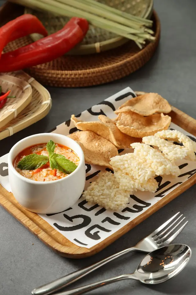 脆脆雙響拼黃咖喱豬肉碎醬 Minced Pork Curry with Rice Crackers & Shrimp Crackers