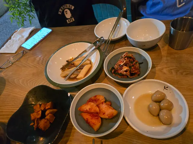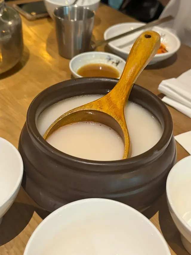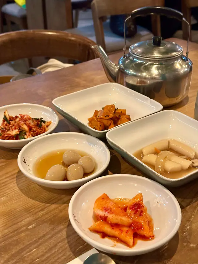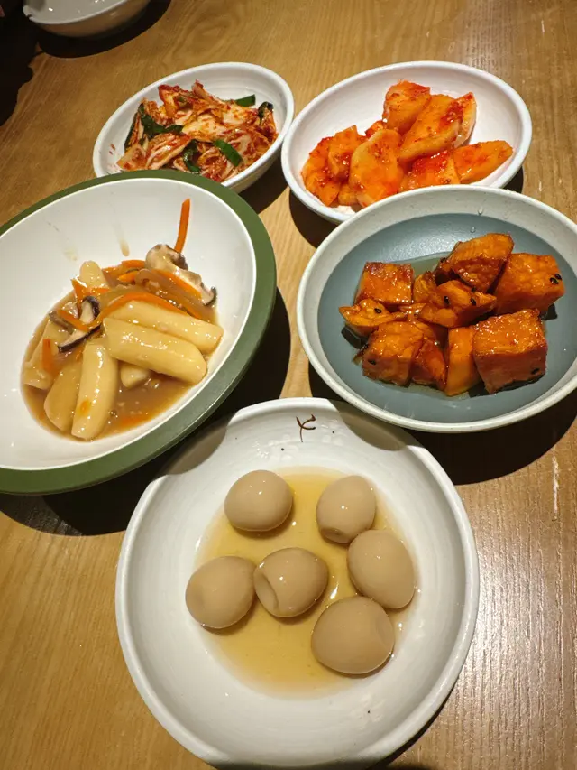 木系裝修似首爾家庭小店,枱距夠寬唔會聽到隔籬傾買樓,播住輕快韓文歌夠晒氣氛。簡樸卻驚艷的開場:五款前菜排開陣仗,唔係hea俾嘅泡菜蘿蔔——→ 最搶係煙韌手指年糕,甜辣醬掛得勻循,咬落軟糯唔粉→ 醃菠菜爽脆帶麻油香,男友偷挾我嗰份泡菜煎餅厚度直逼兩本雜誌!表面煎出蕾絲焦邊,咬落外脆內軟驚喜在芝士層藏餅芯,拉絲混泡菜鹹香,點少許醋醬更醒胃(食兩件已半飽,建議三人分享)醬油炸雞 無骨雞件炸得乾身,咬開肉汁滴落碟醬油蒜香似韓國屋企味,甜鹹平衡唔膩喉👉 兩人分剛好,外帶返屋企翻焗仍脆燉排骨湯 睇餐牌寫「新登場」膽粗粗試⋯→ 上枱時Oppa拎鉸剪過嚟:「我幫你剪開易食啲」排骨燉到筷子一篤就散,薯仔吸盡肉湯精華湯頭濃郁但飲完唔口渴,大豆芽增加口感(冬天飲完由胃暖到指尖)さらに見る
