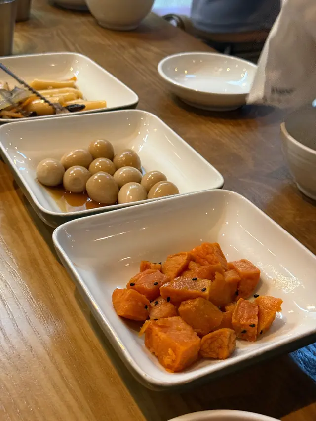 每格都會奉上韓國前菜包括:泡菜、蘿蔔、年糕、鵪鶉蛋、甜蕃薯明太子豆腐鍋 ($348)