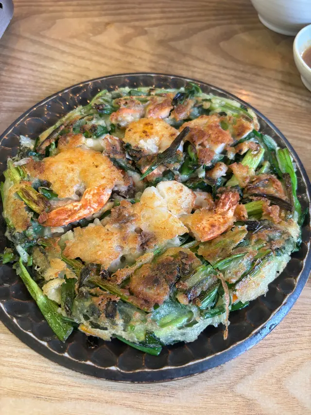 約了兩個朋友在炮台山一間韓國餐廳吃午飯。店裏乾淨雅潔,溫暖舒服,店員們全都是韓國人,男的女的都是靚仔靚女,笑容親切。前菜先送上來,五小碟:泡菜、辣蘿蔔、魚片、年糕和甜番薯,每一款都做得細緻,味道自然,開胃得很。我們點了燉排骨湯($388),加了一份炒飯($50)。排骨湯一上桌就香氣撲鼻,湯底濃厚,帶點醇甜,完全不辣。店員細心地在桌邊剪碎梅菜乾,再把大塊排骨剪成小件,方便夾起來吃。我們一邊聊天,一邊用手拿著排骨啃,連骨髓也不放過,吃得乾乾淨淨。排骨食完之後,精彩嘅炒飯時間到。店員用剩下湯汁炒飯,加微辣泡菜,炒到香氣四溢,每啖都吸曬湯底精華,超級好味,呢個加炒飯選項,真心不可以錯過。還點了海鮮煎餅($140),一上桌就讓人眼前一亮。不同於平時厚厚一層粉的韓式煎餅,這裏的煎餅以大量韭菜、通菜、大蝦、蝦仁和魷魚為主,麵糰只是薄薄一層,咬下去滿是蔬菜和海鮮的鮮甜,既香又脆。黑芝麻炸雞($98)是另一個驚喜。成碟炸雞黑黑的,賣相平平,但咬進口,芝麻香氣爆發出來,像在吃熱騰騰的芝麻糊,雞肉又嫩滑又多汁。飲品方面,午餐時段只需加$10就可以選汽水、凍檸茶或韓式甜凍咖啡等飲品,我們各自點了不同的飲料,冰涼解渴。さらに見る