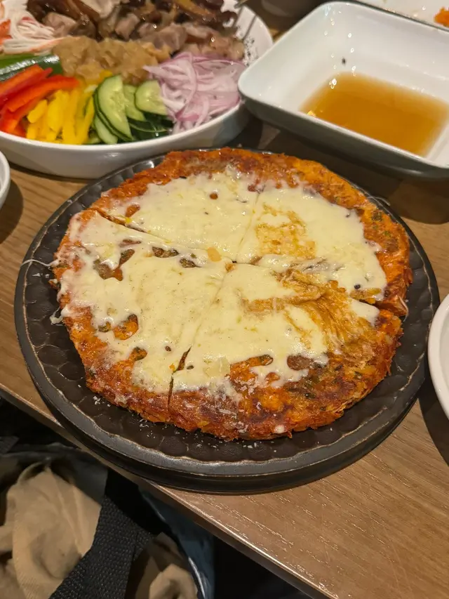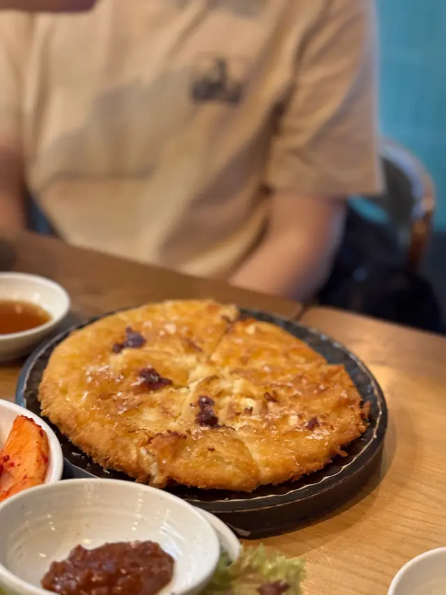 泡菜冷麵好適合夏天食,麵條爽彈有嚼勁,冰涼嘅湯底帶酸辣嘅泡菜味,湯中有泡菜同青瓜絲,清爽解膩,愈食愈開胃芝士薯仔煎餅 ($160)