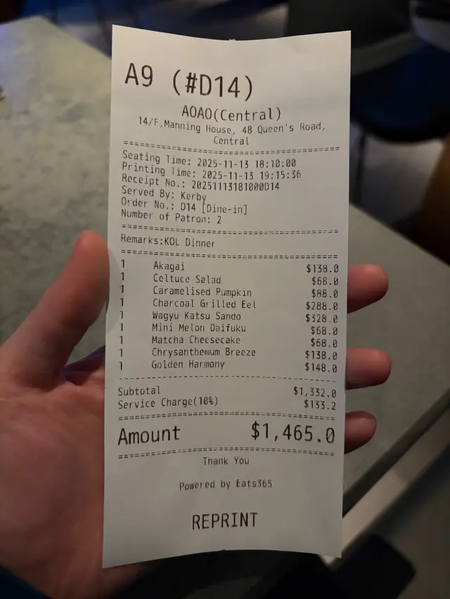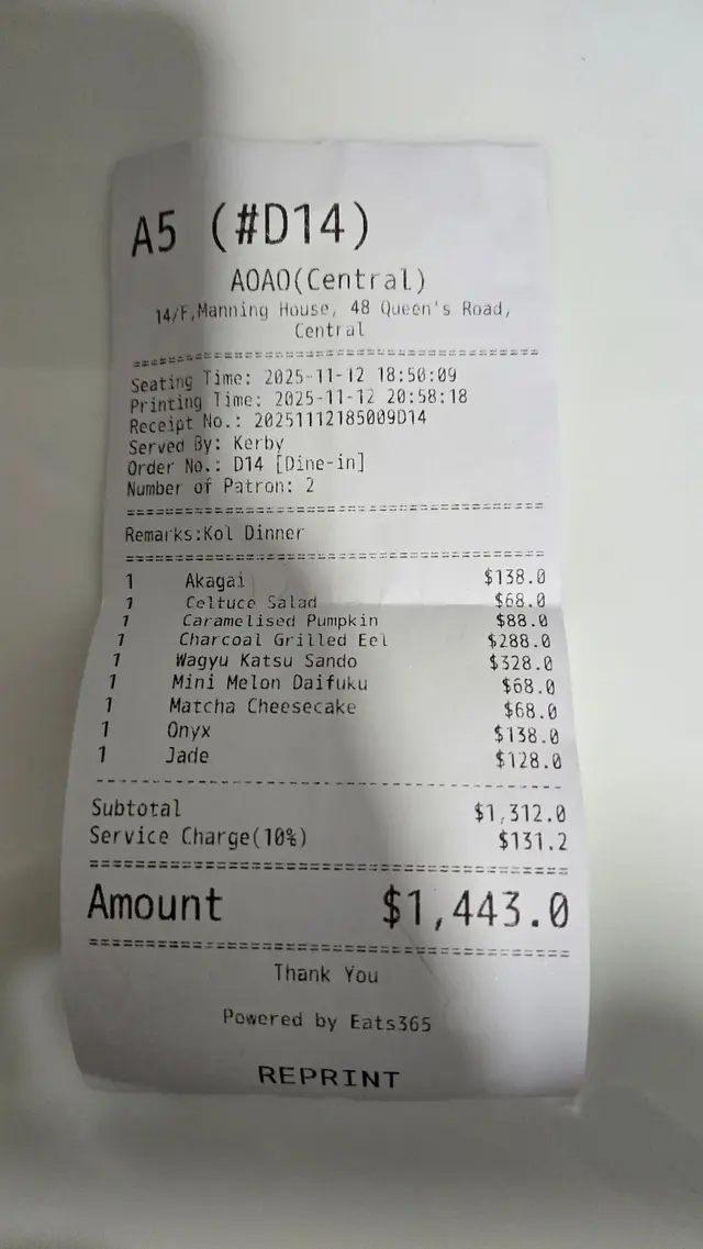 AOAO (中环) 网址: https://s.openrice.com/QrLS0bC0C00 地址: 香港中環皇后大道中38號萬年大廈14樓 电话: +852 55065521