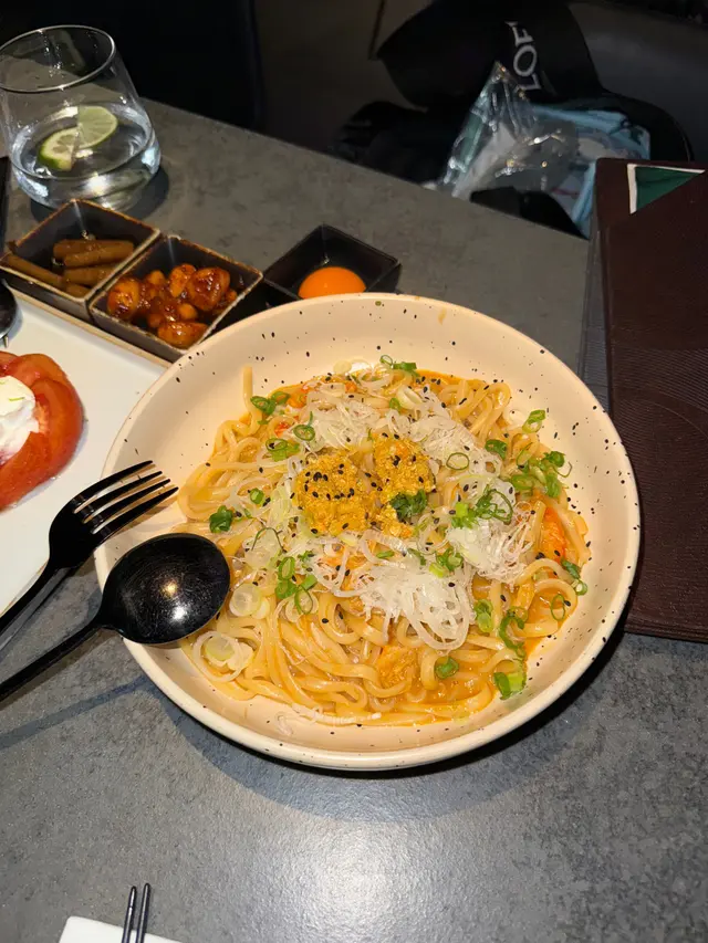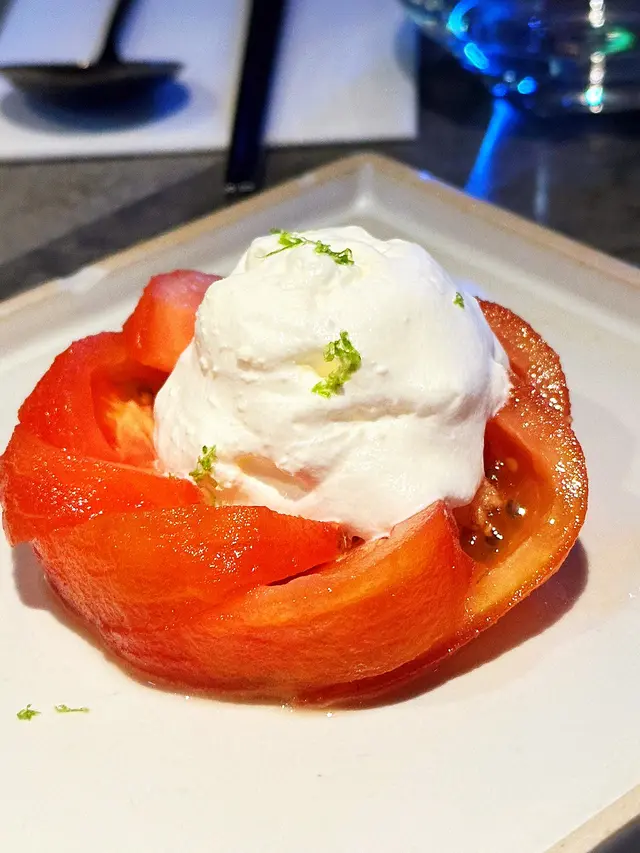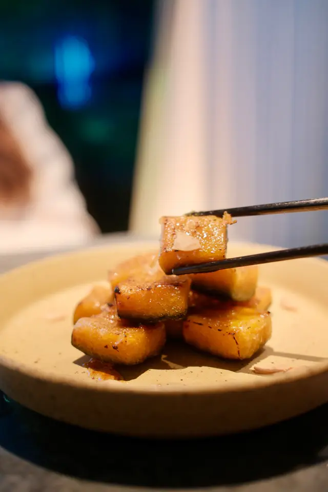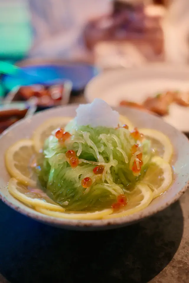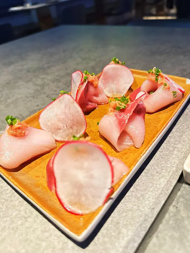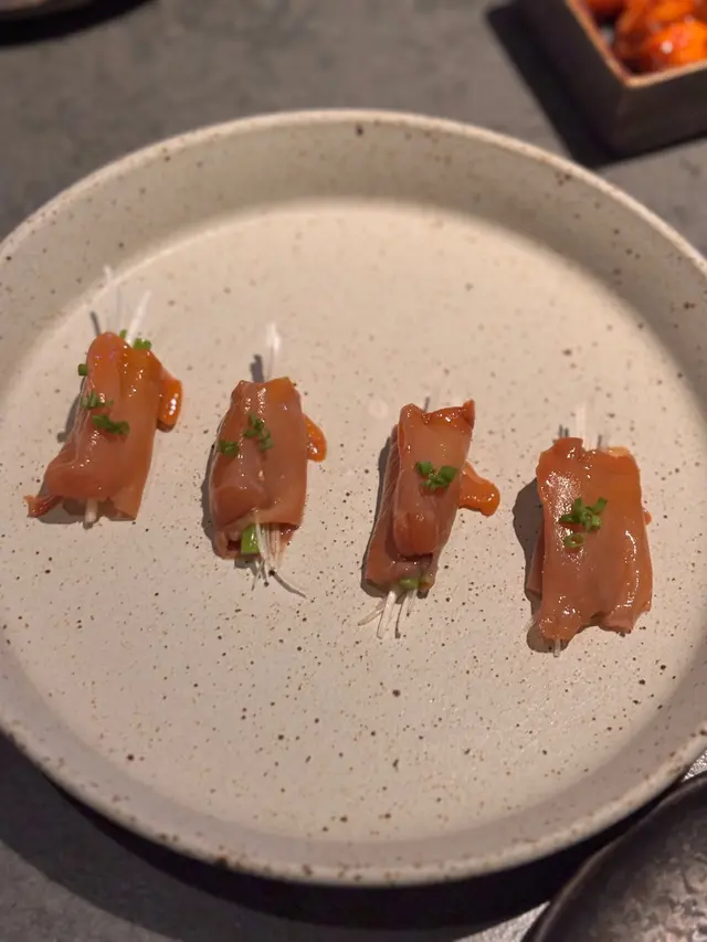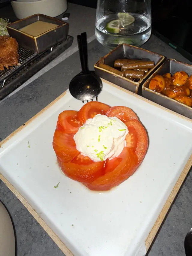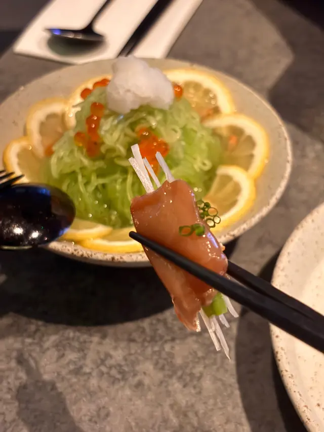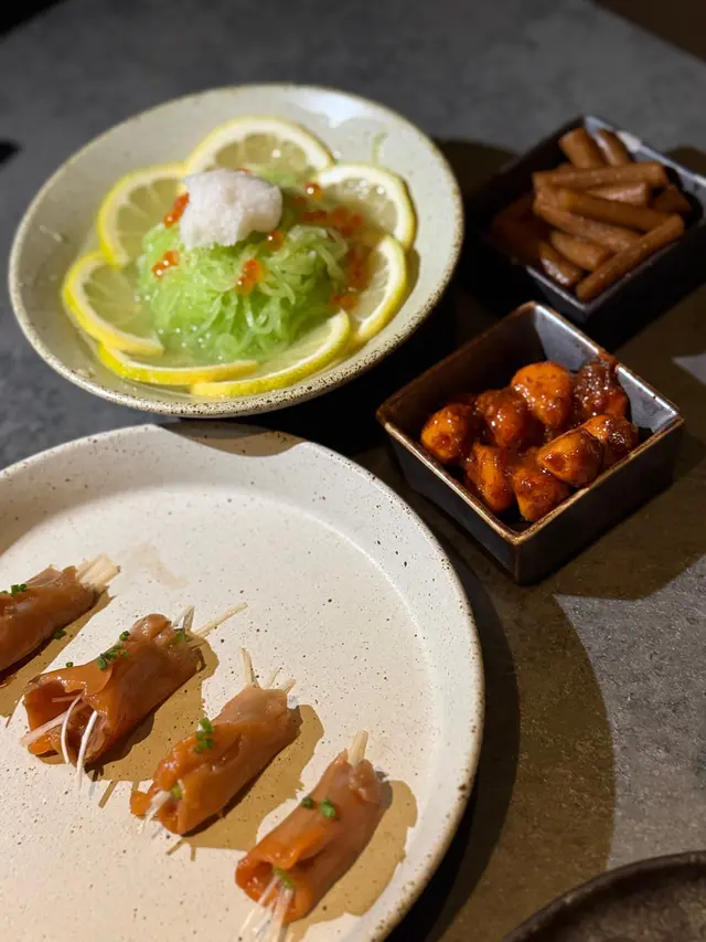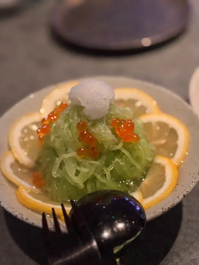 this sleek modern Japanese izakaya boasts a stunning rooftop bar in the heart of Central and serves up one-of-a-kind fusion dishes - exquisite Japanese precision with bold European flavours you won't find anywhere else in Hong Kong. And don’t just take it from us, they’ve been crowned the Spring 2025 Winner and a Summer 2025 Top 100 pick in the HK Restaurant Weeknamed after the Japanese phrase for 'lush green', stepping inside is like entering a posh gemstone-studded sanctuary - the perfect setting to impress a date or celebrate something special. Our meal kicked off with unique complimentary appetizers – garlic in chili bean sauce and pickled bamboo shoots𝗛𝗮𝗺𝗮𝗰𝗵𝗶 𝗖𝗿𝘂𝗱𝗼 𝟮.𝟬 𝗛𝗞𝗗𝟭𝟰𝟴Instead of citrus, they went for a bold savoury umeboshi white miso that totally elevated the delicate fish. Fresh chives and baby radish added a nice textural crunch 👍 𝗣𝗶𝗰𝗸𝗹𝗲𝗱 𝗧𝗼𝗺𝗮𝘁𝗼 𝗦𝗮𝗹𝗮𝗱 𝗛𝗞𝗗𝟳𝟴What looked like creamy burrata was actually a tangy tomato consommé cream that delivered a surprisingly pickled sourness and a tingling, almost 'popping candy'-like sensation𝗖𝗮𝗿𝗮𝗺𝗲𝗹𝗶𝘇𝗲𝗱 𝗣𝘂𝗺𝗽𝗸𝗶𝗻 𝗛𝗞𝗗𝟴𝟴The cinnamon aroma was intoxicating, and that sweet, crispy caramelized top was pure heaven. Crunchy almonds provided the perfect counterpoint to the soft pumpkin𝗧𝗼𝗻𝗸𝗮𝘁𝘀𝘂 𝗛𝗞𝗗𝟮𝟯𝟴The crispy lean Iberico pork collar was elevated by a vibrant tangy plum yoghurt sauce that cut through the richness wonderfully, making every bite an absolute dream 🤤𝗛𝗮𝗶𝗿𝘆 𝗖𝗿𝗮𝗯 𝗕𝘂𝘁𝘁𝗲𝗿 𝗨𝗱𝗼𝗻 𝗛𝗞𝗗𝟮𝟳𝟴The bouncy chewy noodles were coated in a rich buttery sauce. After mixing in the luscious egg yolk, generous chunks of hairy crab meat and delicate shredded onions, every mouthful was a luxurious umami explosion𝗗𝗲𝘀𝘀𝗲𝗿𝘁𝘀 𝗛𝗞𝗗𝟲𝟴 𝗲𝗮𝗰𝗵- 𝗠𝗶𝗻𝗶 𝗠𝗲𝗹𝗼𝗻 𝗗𝗮𝗶𝗳𝘂𝗸𝘂: the MVP - the inner honey melon was naturally sweet and not artificial- 𝗠𝗮𝘁𝗰𝗵𝗮 𝗖𝗵𝗲𝗲𝘀𝗲𝗰𝗮𝗸𝗲: super creamy, rich, and perfectly balanced without much bitterness𝗦𝗶𝗴𝗻𝗮𝘁𝘂𝗿𝗲 𝗖𝗼𝗰𝗸𝘁𝗮𝗶𝗹𝘀- 𝗔𝗺𝗯𝗲𝗿 𝗛𝗞𝗗𝟭𝟰𝟴: a sensory delight - we could smell the velvety avocado oil and wild honey aroma from the foam, which beautifully balanced the gin with sophistication- 𝗛𝟮𝟬 𝗦𝗼𝘂𝗿 𝗛𝗞𝗗𝟭𝟮𝟴: far from just sourness, this was a vibrant, fruity-floral gin concoction that was incredibly light and sippable, suitable for girls…查看更多