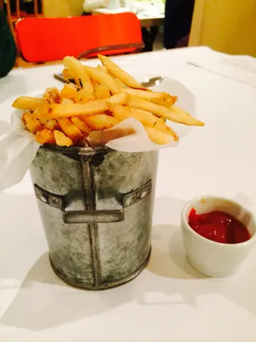 白松露薯条($38)。薯条用一个铁桶送上,白松露味扑鼻,薯条热脆,虽然食落白松露味不太浓郁,但以$38呢个价钱已属好味抵食之选👍当晚同朋友们坐咗三个钟左右先离开,期间店员并冇要求我地交枱,仲不断帮我地添水,服务态度良好。下次朋友聚会都会再考虑applegreen呢个地方