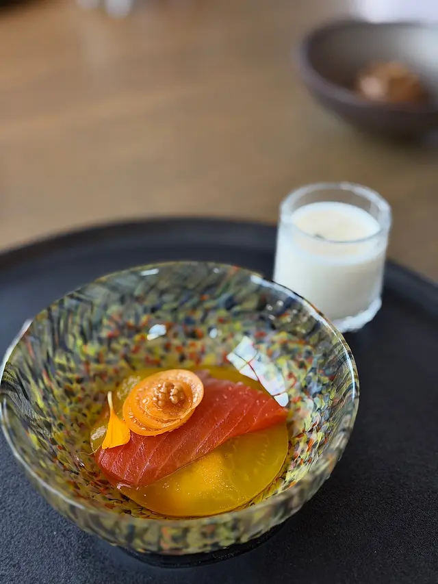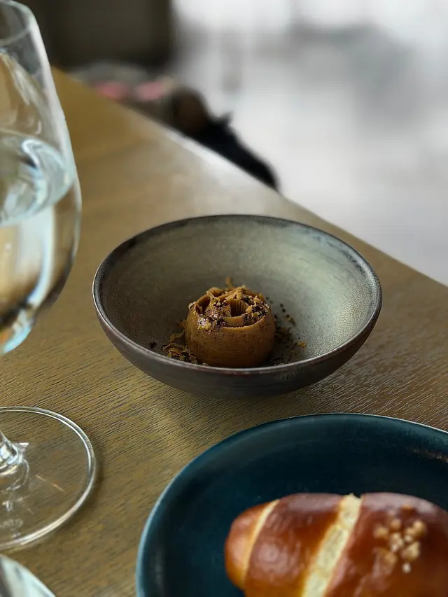 直接去片以下係brunch嘅簡單分享:餐前香檳 & 頭盤:Henri Giraud Dame Jane Sparkling Rosé 真係超正!果香好突出,飲落清爽又有層次。Natto sourdough with brown butter infused with Fukuoka soy & Saga brown cheese 👍🏼👍🏼👍🏼納豆酸種包,抹上以福岡刺身醬油與佐賀熟成芝士調製的牛油,牛油的柔滑與芝士的濃郁互相襯托,醬油的鮮甜滲透其中,形成鹹香、奶香、焦香交織的多重層次。牛油超好食Fuji salmon with rich, milky fish broth 魚湯都係重點,奶香順滑,鮮味濃郁。鮮味濃郁House-made green tea somen 綠茶素麵滑溜,帶淡淡茶香,清爽舒服。主菜:Chicken : Local yellow chicken breast & soy-glazed leg meatball with truffle, mushrooms & peppery Sichuan jus 黃雞胸肉嫩滑,肉丸濃味,松露蘑菇香氣濃。四川醬汁微辣,味道活潑。Murray cod:鱈魚肉質結實鮮甜,火候恰到好處,保留魚本身嘅清香。Lemon cream酸香,broccoli purée滑甜,清新滿足。甜品& 甜酒:Genmaicha & Caviar 👍🏼👍🏼👍🏼米香清新,裹住脆海苔,內有Q彈糯米團同餅乾碎,魚子醬畀少少奢華感,好玩。Citrus蜜柑雪葩、蛋白餅、蜜柑啫喱,酸甜清新,結尾完美收結四季梅 ほうじ茶梅酒👍🏼👍🏼👍🏼茶香互相呼應,甜品的米香與魚子醬的鹹鮮,配上焙茶梅酒的果香與茶韻,鹹甜平衡,和風十足。Petits FoursFinancier:新鮮出爐的金磚小蛋糕,上面鋪上Granola一齊焗,外脆內軟,牛油香濃。Blueberry cream cheese:配Financier一齊食Elderflower juice:花香微甜,清新解膩。DALLOYAU'S DA CHOCO 芝麻脆皮朱古力,香濃酥脆。服務溫暖而風趣,侍應不但細心講解菜式,更主動交流飲食心得,令這個午後時光倍添難忘。…Read More