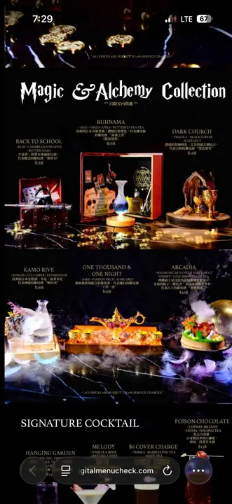 位于铜锣湾的Arcadia, 是近期人气急升的天台酒吧兼餐厅❤️ 从高处俯瞰,整个维港海景尽收眼底,另一边则是铜锣湾熙来攘往的城市夜色,闪烁的灯火与轻柔的音乐交织成一幅梦幻画面😍 室内装潢华丽大胆,花团锦簇的设计令人目不暇给,无论在吧枱旁坐著啜饮鸡尾酒,还是在热气球造型的打卡位留影,都彷佛置身童话世界🤗 Arcadia 的 Magic & Alchemy Collection 绝对是必试系列✅ 首推Ruhnama—— 青苹果与蝶豆花茶的清新组合,以Soju为基底,入口酸甜平衡,最特别的是随着搅拌后会呈现幻变色彩,如同一场杯中魔法,象征錬金术的「命运之书」❤️ 另一杯One Thousand & One Night 则以清爽的清酒配上热情果与伯爵茶,果香与茶香交织出层次丰富的香气😋 加上服务员现场燃烧表演,火光一闪,整个空间瞬间被点亮,满溢异国浪漫气息🌟 主菜选项同样令人惊喜✅ 火烧牛骨髓松露和牛生牛肉他他*香气浓郁,烟熏气息引人垂涎😚 炸流心芋球外脆内滑,融合咸香与绵密口感🤩 大虾墨汁意大利粉则以鲜味见称,墨汁浓稠包裹住意粉,每口都带有海洋的咸香👍 迷迭香酱汁烩牛颊肉软嫩多汁,香草气息渗透其中☺️ 甜品方面不可错过朱古力芭菲与火焰雪山—— 前者浓郁馥郁,后者则以现场燃火表演掀起终章高潮😎 餐厅亦特别推出Ladies Night 优惠❣️ 逢星期三、四及六晚九时后,女士可免费享用两杯鸡尾酒,是闺蜜小聚或周末放松的完美选择😎 最近更新推出双人 Festival Dinner Set,以丰富多道菜式搭配限定调酒,让客人能在瑰丽景致下尽情体验味觉与视觉的盛宴☺️ …查看更多