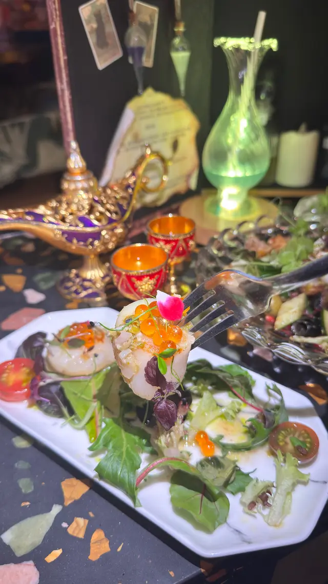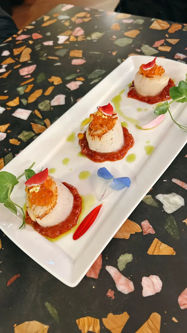 今次同朋友登上30樓「Arcadia」,望住維港夜景🌊猶如置身於花海一樣中享用美食💐餐廳逢星期三至六有Live Music🎤.⚠️此餐廳收取10%服務費💰.Arcadia Festival Dinner Set🍽️套餐$999💰.西伯利亞13年魚子醬🖤跟餐$180💰魚子醬連同小圓餅🍪輕嚐一口😗魚子釋放出豐富的鮮味,餘韻爽口😋仲有2串水牛芝士串及2款配料 🥓.香煎澳洲盲曹魚🐟盲曹魚表面放上芒果莎莎🥭煎至皮脆肉嫰😆加上青檸汁更加開胃🍋🟩底下有中東米飯🍚.避風塘XO 醬原隻鮑魚蜆肉扁意粉🍝套餐包含💰有鮑魚、蜆、魚🐠八爪魚🐙蝦🦐意粉微鹹辣🌶️略嫌偏油🥲.香煎日本刺身帶子伴三文魚籽🐚套餐包含💰帶子表面煎至焦香🔥肉質鮮嫩多汁😛配上鹹鮮三文魚籽,以及小沙律🍅🥬.地道黎巴嫩沙律配水牛芝士🥗套餐包含💰有水牛芝士🫕黑橄欖、青橄欖🫒車厘茄、沙律菜🥦石榴、青瓜🥒麵包粒🍞整體味道酸甜🤤又有奶香😌.朱古力布朗尼🍫套餐包含💰布朗尼配上雪糕🍨水果🍓🍇.Smiling🍸跟餐$44💰由開心果、榛子🌰抹茶🍵同牛奶調製而成🥛略嫌太甜🥺.Sun Of The Peach🍹跟餐$44💰由蜜桃🍑檸檬🍋同紅茶調製而成🫖.生日6大優惠🎁1️⃣生日佈置🎂2️⃣免費生日禮物『永生花禮盒』💐3️⃣壽星免費Magic Cocktail⚱️4️⃣6-8pm / 8-10pm 前慶祝生日晚餐,生日壽星免費任飲,同行其他人+$158/2小時任飲5️⃣全單8折6️⃣免開瓶費*開瓶只限兩人一支🍾…查看更多