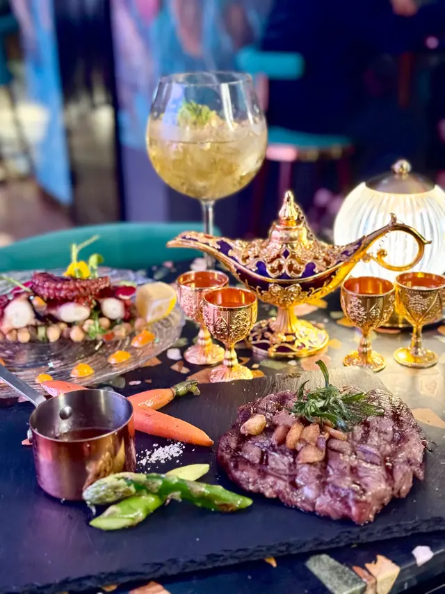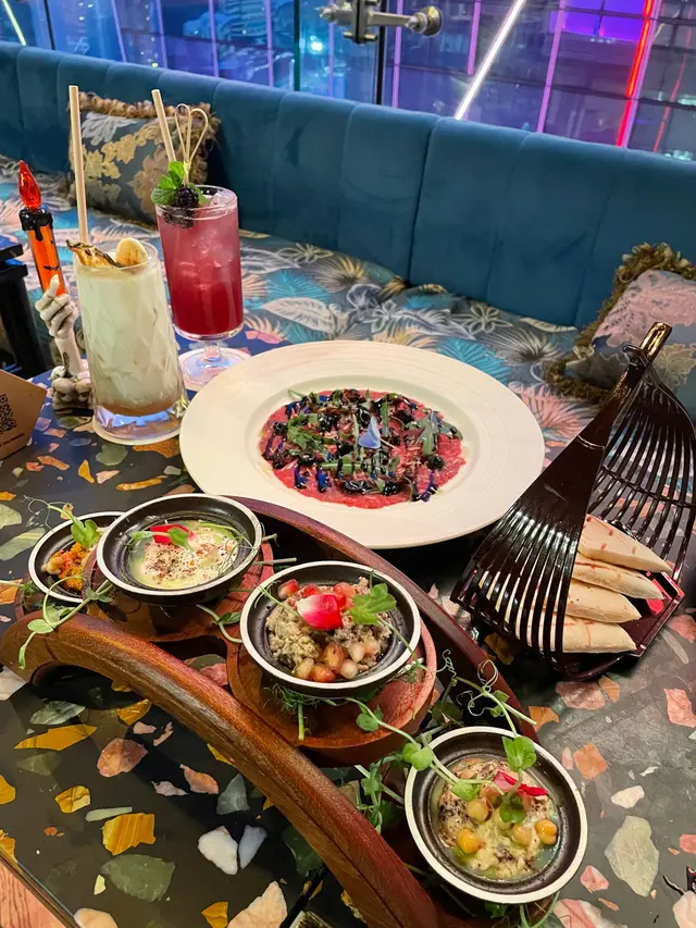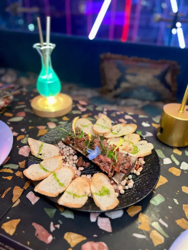 位於銅鑼灣的Arcadia, 是近期人氣急升的天台酒吧兼餐廳❤️ 從高處俯瞰,整個維港海景盡收眼底,另一邊則是銅鑼灣熙來攘往的城市夜色,閃爍的燈火與輕柔的音樂交織成一幅夢幻畫面😍 室內裝潢華麗大膽,花團錦簇的設計令人目不暇給,無論在吧枱旁坐著啜飲雞尾酒,還是在熱氣球造型的打卡位留影,都彷彿置身童話世界🤗 Arcadia 的 Magic & Alchemy Collection 絕對是必試系列✅ 首推Ruhnama—— 青蘋果與蝶豆花茶的清新組合,以Soju為基底,入口酸甜平衡,最特別的是隨着攪拌後會呈現幻變色彩,如同一場杯中魔法,象徵錬金術的「命運之書」❤️ 另一杯One Thousand & One Night 則以清爽的清酒配上熱情果與伯爵茶,果香與茶香交織出層次豐富的香氣😋 加上服務員現場燃燒表演,火光一閃,整個空間瞬間被點亮,滿溢異國浪漫氣息🌟 主菜選項同樣令人驚喜✅ 火燒牛骨髓松露和牛生牛肉他他*香氣濃郁,煙燻氣息引人垂涎😚 炸流心芋球外脆內滑,融合咸香與綿密口感🤩 大蝦墨汁意大利粉則以鮮味見稱,墨汁濃稠包裹住意粉,每口都帶有海洋的咸香👍 迷迭香醬汁燴牛頰肉軟嫩多汁,香草氣息滲透其中☺️ 甜品方面不可錯過朱古力芭菲與火焰雪山—— 前者濃郁馥郁,後者則以現場燃火表演掀起終章高潮😎 餐廳亦特別推出Ladies Night 優惠❣️ 逢星期三、四及六晚九時後,女士可免費享用兩杯雞尾酒,是閨蜜小聚或週末放鬆的完美選擇😎 最近更新推出雙人 Festival Dinner Set,以豐富多道菜式搭配限定調酒,讓客人能在瑰麗景致下盡情體驗味覺與視覺的盛宴☺️ …查看更多