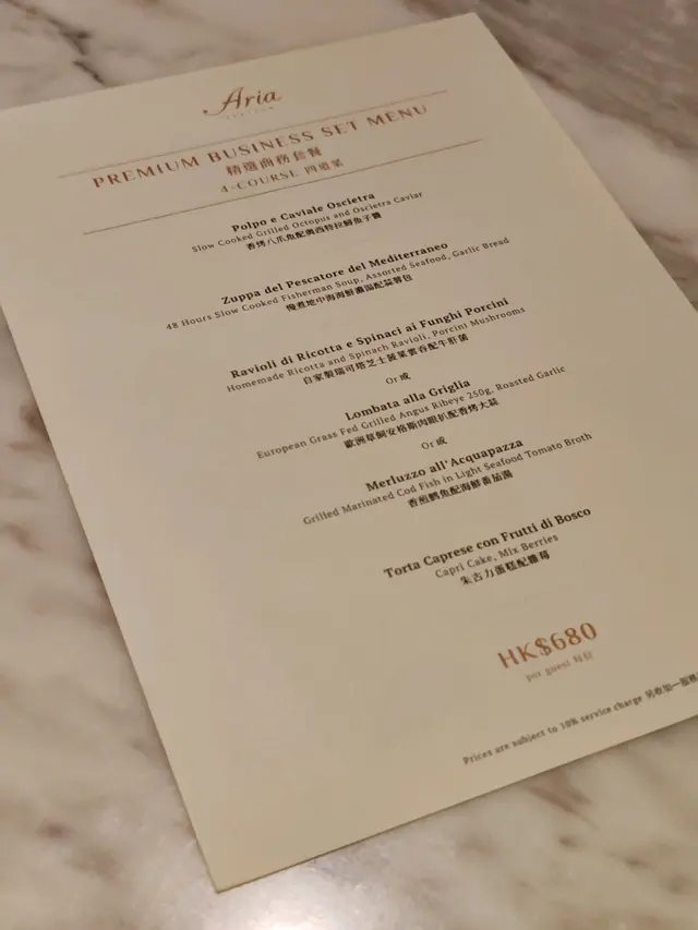 同太太慶生嘅生日飯,嬲到第一次寫食評先講重點:叫咗一份medium rare嘅牛扒,然後餐廳廚房煮咗一份接近全熟嘅牛扒都照上菜俾我哋,令太太同我對間餐廳同餐飯都覺得十分失望十二月下旬同太太去咗Aria去食晚飯,本身開開心心去同太太慶祝生日,餐廳嘅裝修同景都唔錯,但枱與枱距離比較近,比較容易聽到隔離枱傾計食物方面,前菜同pasta都正正常常,跟住上嘅牛扒非常出事。我哋叫咗medium rare嘅牛扒,然後餐廳上咗一份接近全熟嘅牛扒俾我哋,重點係塊牛扒係上菜前喺廚房已經由一整塊牛扒切開咗大約7-8小件咁,所以切開塊牛扒時廚房一定知道件牛扒明顯overcook咗,同客人要求的medium rare有明顯分別,但係廚房或者樓面都係照上菜,老實講非常唔專業同令人非常失望 (我哋落單後waitress 有重複一次confirm order,相信絕對唔係落錯單)老實講如果我去一間大眾化少少嘅餐廳叫個一百蚊牛扒餐嘅,要求五成熟,如果呢間餐廳俾件全熟牛扒我,我真心都會覺得由得佢,一分錢一分貨,同埋普通餐廳嘅廚房可能冇咁專業,overcook 左都未必知道但响Aria呢度真係令太太同我都覺得失望,間餐廳門口有個牌寫住 「Top Italian Restaurants 2024」,結果係佢哋廚房切開牛扒時明顯知道份牛扒已經overcook咗,明知唔合乎客人要求都照樣上菜,真心令人好失望我哋當時有同餐廳樓面反映,個waiter都只係輕輕一句 「we can exchange it for you」 ,態度好敷衍我同太太當時已經對間餐廳同埋佢廚房冇信心,連換都唔想換,最後硬食件全熟扒就算,止蝕離場 連時間都唔想蝕俾佢好少响中環食間靚靚仔仔餐廳食到咁唔開心,仲要係幫太太慶生嘅生日飯,慘最後要講番餐廳一樣野抵讚嘅,因為係慶祝太太生日嘅生日飯,間餐廳有事前準備好份甜品送俾我哋,呢點係值得讚嘅結論:相信唔會再幫襯呢間餐廳PS:塊牛扒 HK$5xx,廚房煮得唔好食之餘件牛好似幾瘦下,個人覺得非常唔抵食查看更多