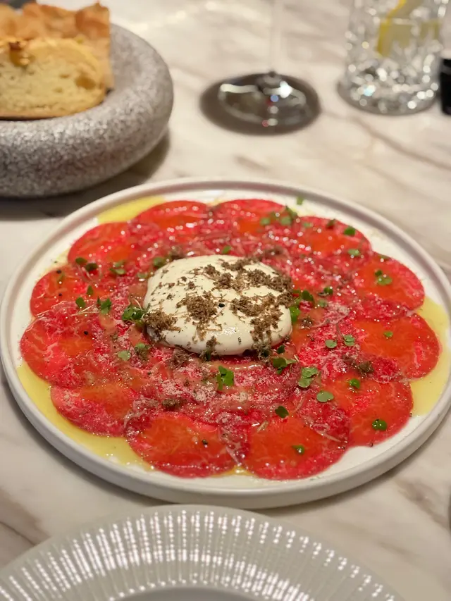 呢間拖得有啲耐😂已經係上個RW嘅餐廳嚟雖然今次100Winners’ Edition入面冇佢但覺得個set本身都幾抵 食物質素又幾好以往差唔多價錢好似得3個course 今次有4個可以揀兩款前菜 一個主菜 一個甜品 只係$328!𝗥𝗲𝘀𝘁𝗮𝘂𝗿𝗮𝗻𝘁 𝗪𝗲𝗲𝗸 𝗟𝘂𝗻𝗰𝗵 𝗦𝗲𝘁($𝟯𝟮𝟴) 🤍𝗕𝘂𝗿𝗿𝗮𝘁𝗮 | 𝗥𝗮𝘁𝗶𝗻𝗴: 𝟴/𝟭𝟬終於 burrata嘅配搭唔再只係番茄! 冇諗過同開心果醬咁夾入口同平時餸番茄係完全另一種感覺 另外又有啲血橙喺到代替咗番茄嘅角色去解膩 橙香食落係另類嘅清新🤍𝗛𝗮𝗺𝗮𝗰𝗵𝗶 | 𝗥𝗮𝘁𝗶𝗻𝗴: 𝟳.𝟴/𝟭𝟬去過唔少餐廳 前菜都會有Hamachi選擇 呢間算厚身魚肉無筋 魚油香好夠 配簡單嘅橄欖油同蔥鹽黑椒好食 但未算係食過最出色嘅Hamachi 扣少少分係可能因為冇其他醬汁 有一兩下會少少腥🤍𝗣𝗼𝗹𝗽𝗲𝘁𝘁𝗲 𝗱𝗶 𝗖𝗵𝗶𝗮𝗻𝗶𝗻𝗮 | 𝗥𝗮𝘁𝗶𝗻𝗴: 𝟳.𝟱/𝟭𝟬兩大粒meat ball 鎖住曬啲肉汁 入口juicy食落比想像中啲肉絞得仲要冧 唔會食到筋個醬汁就係平時食開嘅傳統meat ball咁嘅味🤍𝗭𝘂𝗽𝗽𝗮 𝗗‘𝗔𝗿𝗮𝗴𝗼𝘀𝘁𝗮 | 𝗥𝗮𝘁𝗶𝗻𝗴: 𝟳.𝟱/𝟭𝟬點少得叫翻個餐湯!仲要係我鍾意嘅龍蝦湯質地濃稠 但唔算太creamy嗰種 比較係飲龍蝦味嘅本身中間有一羹左右份量嘅蝦他他肉 好食^^🤍𝗥𝗮v𝗶𝗼𝗹𝗶 | 𝗥𝗮𝘁𝗶𝗻𝗴: 𝟴/𝟭𝟬比較愛嘅係佢嘅口感同個汁!🫶🏻ravioli嘅皮我覺得係偏厚少少但就係咁 佢先至有咬口! 醬汁creamy重奶油同菇味Menu寫餡料係鴨肉(?)但唔太食得出 反而重芝士味如果肉嘅存在感再高啲 呢碟會更高分🤍𝗣𝗶𝘇𝘇𝗮 𝗧𝗼𝘀𝗰𝗮𝗻𝗮 | 𝗥𝗮𝘁𝗶𝗻𝗴: 𝟳.𝟱/𝟭𝟬相比Ravioli佢作為第二個main 味道上比較遜色無可否認佢個餅底係幾好食 邊位脆又唔會太硬餅底厚薄適中 重麵粉香 只係啲toppings我覺得比較普通🤍𝗧𝗶𝗿𝗮𝗺𝗶𝘀𝘂 | 𝗥𝗮𝘁𝗶𝗻𝗴: 𝟳.𝟱/𝟭𝟬咖啡味比較出嘅Tiramisu 出到一𢳂係眼見嘅濕😂不過要讚嘅係mascarpone cheese超級香滑🤍𝗧𝗼𝗿𝘁𝗶𝗻𝗼 𝗖𝗮𝗹𝗱𝗼 𝗗𝗶 𝗠𝗲𝗹𝗲 𝗰𝗼𝗻 𝗚𝗲𝗹𝗮𝘁𝗼 𝗮𝗹𝗹𝗮 V𝗮𝗻𝗶𝗴𝗹𝗶𝗮 | 𝗥𝗮𝘁𝗶𝗻𝗴: 𝟳.𝟱/𝟭𝟬作為一餐飽到上心口嘅飯嘅ending 呢個比較適合不過老實交代自己就唔太係蘋果甜品嘅愛好者🙂‍↕️好難評價佢整得好唔好 但會話整體正常 食得曬整體食物質素幾好 最後食到甜品已經飽到上心口裝修風格幾高級 坐得舒服 採光好 又有高空靚景有個半露天嘅位用玻璃延伸頂部 感覺更加開揚有機會呢間都值得一嚟 慶祝生日紀念日嗰啲絕對夠睇🫶🏻查看更多