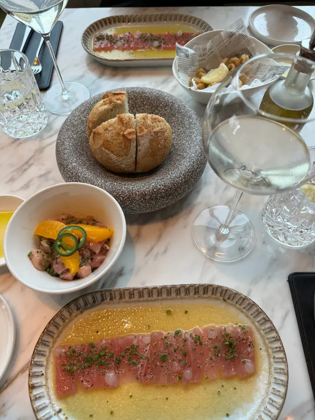 又到聖誕🧑‍🎄 又到聖誕🎄聖誕節梗係想食番啲夠晒聖誕氣氛嘅大餐。昨晚試左間不但好chill ,仲夠晒romantic 既慶祝既餐廳!跟住落嚟帶返個介紹俾大家!😌.※環境點評※間餐廳就由中環地鐵站出發,行5分鐘左右,近Lan Kwai Fong,夠哂熱鬧喇👯‍♀️,食飽飽想即刻返屋企又得,未夠喉,仲可以即刻過隔離飲番杯!地理位置進可攻退可守!.Aria 嘅裝修是很有意式風味🇮🇹豪華舒適,以復古風既傢俱擺設,採用舒適雅座長椅及盆栽植物🌵營造 chill 同romantic 既氛圍🫶🏻有private room同outdoor 用餐區,位於24樓高層,擁令人讚嘆的城市美景.※用餐體驗※一入到去餐廳reception,就有好熱情嘅男店員用地道嘅意大利文同我哋打招呼,佢真係十分有Energy⚡️佢嘅熱情成功令到我哋都進入咗狀態,十分開心地用餐。.在位置坐好後,staff們都主動介紹popular 嘅items,但係有選擇困難症嘅我左揀右揀,最後揀咗個 7 course “La Carta Bianca”全部由大廚發板👨🏻‍🍳好有神秘感🤭.🍞 Sourdough bread 首先 staff們遞上暖粒粒既Sourdough Bread 🍞 外層鬆脆,內層香軟😍點上獨家嘅olive oil 同黑醋,令個包既口感豐富左.🦪Oyster以oyster殼上承載來自法國既oyster 🇫🇷上層加左Caviar 、新鮮檸檬葉,帶鹹味既caviar mix埋鮮甜既oyster,口感形成咗強烈嘅對比,塊檸檬葉啱啱好就可以平衡到成個口感,一啖入口勁滿足!😍.🍽️慢煮鮑片 鮑片係用sake 慢煮咗四個鐘,慢煮鮑片去除傳統鮑魚既韌身之外,慢煮令鮑片清新爽口,肉質鮮嫩有彈性,帶有sake餘香,配點墨魚汁, delizioso!.🐟蒸煮吞拿魚頸肉吞拿魚每個部位的油脂及鮮味各有唔同,魚頸位肉我係第一次食,採用蒸煮方法,竟然連腥味都無,但係因為佢整成魚蓉,我地食落去嘅口感變得比較單一,希望下次可以食到其他食法。.🍝新鮮海膽意粉意粉條條沾滿龍蝦醬汁,充滿牛油香,夠creamy,又會另外加入2至3件海膽,令到成碟意粉非常香噴噴😍重點係廚師每天實人工手做嘅意粉真係非常彈牙!口感非常好!.🍝牛尾意粉上邊嘅芝士粉好配合闊條意粉,好掛汁😍加埋完美熟度的牛尾!正。.🥩M5 澳洲和牛鮮嫩的肉質配合上大理紋油花,入口即溶,牛嘅香氣在口腔中完全揮發出來,繞樑三日!.🍮西西里甜品是十分傳統的西西里地道甜品,口感有點像我哋平常吃的蛋散,但係裏邊包住啲泡芙,整體感覺唔錯,但係可能始終食唔慣,我哋未覺得好驚艷。查看更多