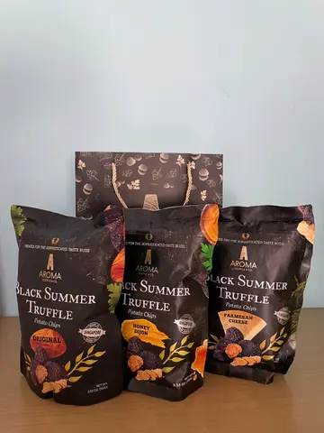 继咸蛋鱼皮之后,另新加坡人气薯片品牌Aroma Truffle都来香港插旗。Aroma Truffle有3只口味,分别系原味,Parmesan Cheese 同蜜糖芥末,3只口味都系$69 一包。Original 原味 (大推)一打开包装,阵阵松露的香气涌出来,微咸, 连本身不爱黑松露既人, 都大讃好食。Parmesan Cheese巴马臣芝士加入parmesan cheese 令味道层次丰富了,而且每一块都有厚厚cheese包住‧更浓更惹味。Honey Dijon蜜糖芥末带有点蜜糖嘅甜味,同松露撞埋一齐,异常地夹。上网睇先知原来Aroma既黑松露系来自意大利Spoleto农场,采摘后挑选出最佳货品并加工保鲜,然后空运至新加坡作烹制及制作。100%手工烹制,100%新加坡制作。怪唔得知啲松露咁浓咁香。…查看更多