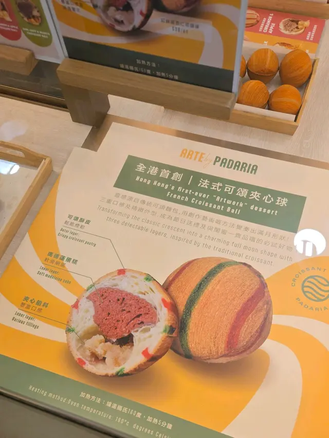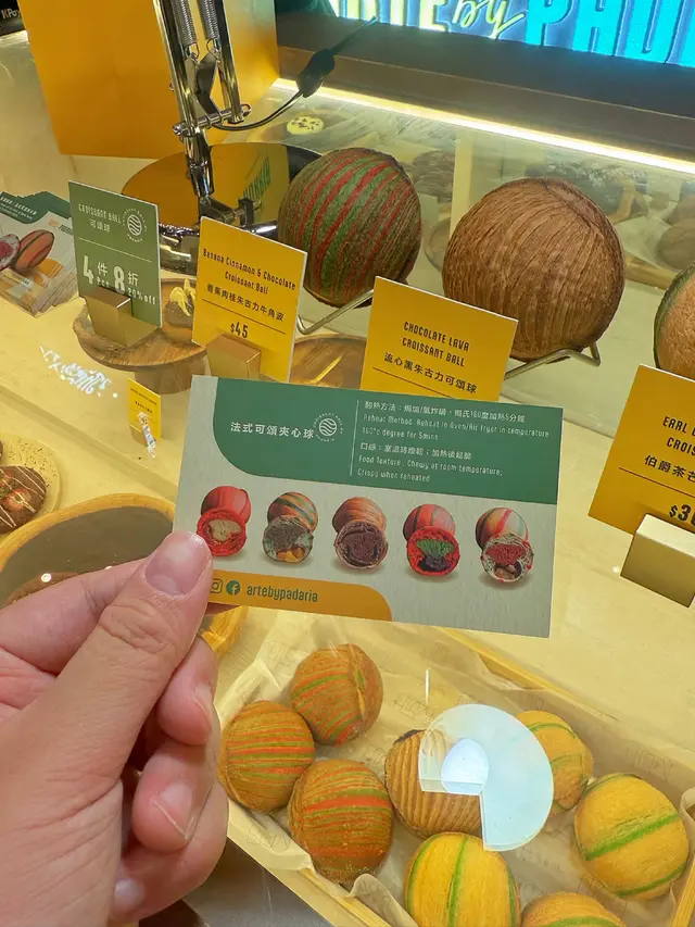最近行街發現咗法式甜點店ARTE by padaria有款可頌夾心球,我稱佢做「可頌波波」,因為成個立體月球咁,圓波波好可愛,仲好多味選擇,外型討好又好應節。除此之外,店內仲有不同款式的蛋糕、曲奇,做功精緻,今年中秋節就帶晒佢哋一齊過節啦!.🥐法式可頌夾心球(流心黑朱古力可頌)拳頭咁大,成個都可以食落肚,可頌外皮乾身少少脆,內裡是瑪德蓮蛋糕芯,蛋糕軟棉棉,我揀咗朱古力流心餡料,黑朱古力香濃,唔太甜,豐富口感有層次。.其他可頌味道:瑪德蓮菠蘿可頌球 / XO醬可頌球 / 咸蛋可頌球 / 伯爵茶芒果可頌球 / 肉桂蘋果可頌球 / 香蕉肉桂朱古力可頌球.🌹唯一的愛(法式反烤蘋果杏仁撻)個樣同個名都超級浪漫,氹人氹自己都一流🥰。切開清晰見到蘋果粒粒,食入口除了蘋果香仲有濃郁杏仁和玉桂味,軟錦慕絲質感充滿甜蜜蜜感覺。…查看更多