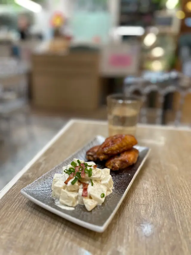 老實說薯仔沙律並不是筆者”飛佛”, 之但係單看外表,加點點煙肉碎,還有葱花,就知㕑子有心思,三隻雞翼,㕑子在中央部分𠝹一刀,做了手腳更入味,底味吸引,點點蜜糖,剛剛烤出來熱騰騰,有點燙咀,就像去BBQ花了許多心機去燒的感覺一樣,單是吃這雞翼,已吃出那份誠意。