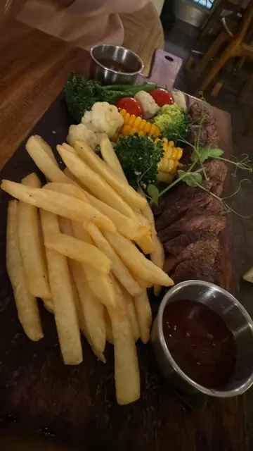 呢间主打"男色经济圈"泰国餐厅的确好适合全女班黎尖叫一下因为餐厅内有猛男在场系你食饭果阵一边除衫show手瓜show腹肌仲有得喂食同其他心跳互动添星期一晚都坐满8成9成仲要全场90%为女性呢个现像的确有趣成晚听得最多就系生日歌同尖叫声餐厅好识做有个小Sticker比女士们主导返同班猛男ge亲密情度保证你情我愿我今日打分主力真系想打比班猛男个个大只又识做炒气氛无得输我无份同猛男互动纯食花生都好欢乐不过论返个食物我就完全明白点解餐厅要请猛男黎坐阵因为呢度所有菜式都唔好食❇️飞天通菜 HKD88😩唯一正常但都唔系好食❇️炭烧泰式封门柳 HKD288😡好贵但份量好少半般都系薯黎同埋无炭烧味❇️醉猫炒河 HKD148😡呢个本黎我飞佛点知呢个真心唔好食湿嗒嗒一Pat Pat搞唔掂❇️椰子鸡汤 HKD88😨水油分离同好淡❇️Thai Milk Tea HKD48👍VERY GOOD 茶好浓唯一一样野可大赞❇️Delight😌猛男特饮荔枝味cocktailOK正常仲有猛男揽实你shake都会比个Like埋单 HKS933好贵呀单单如果比食物我直头觉得离晒谱总之食物负分但猛男气氛我比100分所以嚟呢度只有情绪价值可以提供美饭来讲呢度一定系冇嘅…查看更多