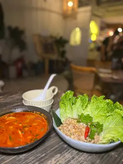 朋友系英国返来,我地谂住系尖沙咀食饭,就谂起呢间book好多次都book唔到嘅泰菜😂今次何只book到,仲有chill chill长台坐(要盘膝)/泰皇虎虾炒金边$138/味道酸酸地,几开胃🍋🟩🥘/蛋炒咖喱软壳蟹$178/软壳蟹唔油,但份量少😂个蛋好creamy好滑/香茅烧猪颈肉$92/肉嫩几juicy,外皮焦香,可encore~/泰式奶茶$58/真系几香滑,有正宗泰奶feel🇹🇭某d日子仲有猛男waiter,唔好错过啦~…查看更多