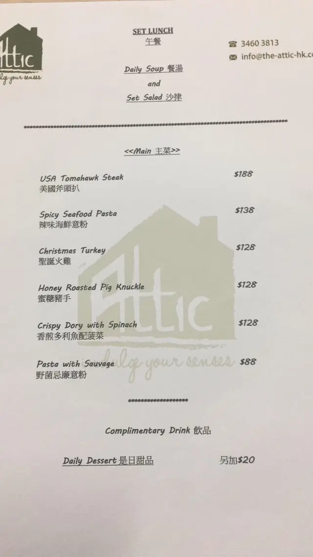 Attic (观塘) 网址: https://s.openrice.com/QrLS0ut4700 地址: 香港觀塘偉業街153號偉業中心1樓 电话: +852 3460 3813