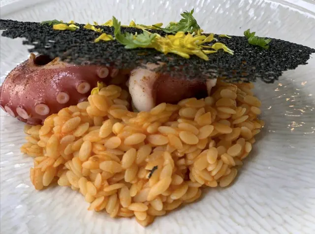 This is my second time to go to Atum for dinner. The food quality remains nice and artistic.That night we ordered the seafood platter with fresh oyster, shrimp, scallop, salmon, caviar with foie gras, sea urchin and crab. All seafood was fresh and yummy. The second dish was creamy risotto and abalone in crab cream sauce. The abalone was cooked very soft and got a rich taste of crab cream. Together with risotto was a good match. Last but not least, it was the complimentary dessert when you ordered the seafood platter. As we marked that it was a birthday and anniversary celebration, the greeting was warmly presented one the dessert dish. The dark chocolate ice cream and raspberry sorbet were both tasty and marked a wonderful end to our dinner. …查看更多