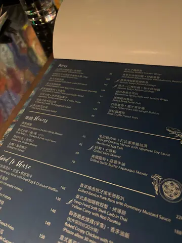 第一次黎呢度,体验10分好。同行三个人,我哋拣咗室内嘅位置,冷气好足够,环境好干净,枱与枱之间嘅距离都10分足够。waiter随时都留意住每一位食客嘅水足唔足够,同埋随时ready落单。两位饮酒嘅朋友,叫咗呢度出名嘅lady grey,好易入口,仲跟咗个甜品,绝对满足女仔嘅味蕾。唔饮酒嘅朋友就叫咗佢哋personalised mocktail,同佢哋讲咗话想要fruity d嘅,就调咗一杯士多啤梨加peach嘅饮品出嚟,都好好饮,虽然偏甜,但系都可以接受。另外叫咗香肠拼盘同埋咖喱软壳蟹蒜蓉包,味道都好正,配合饮品,简直一流。最后仲试埋佢哋其中一个甜品,焦糖香蕉窝夫,佢哋嘅窝夫饼焗得好脆,好好味。…查看更多