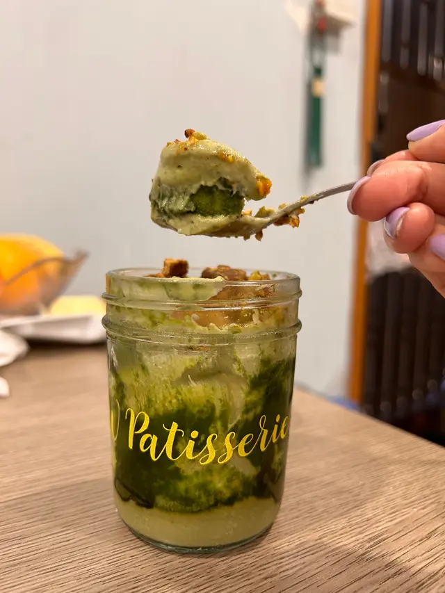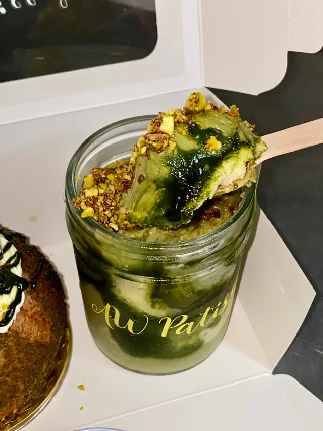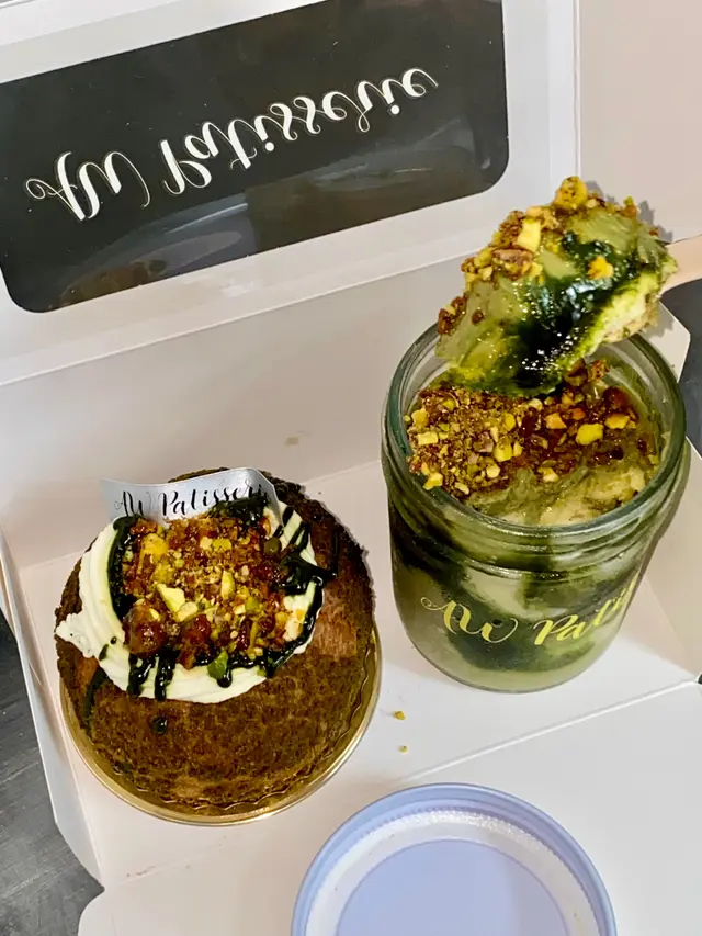 特濃意大利開心果麻糬手工泡芙😍 $58 超正‼️泡芙皮微脆,麻糬煙煙韌韌,開心果餡完全爆多爆濃🤤每一口都吃到濃郁的開心果味😍 雖然吃到最後會有一點點膩,但小妹覺得非常值得買😋 開心果迷必食‼️ 特濃開心果蛋糕樽🤤 $68 相比泡芙,蛋糕樽層次口感更豐富😋因為上面有香脆的開心果粒,中間有口感軟糯綿密蛋糕👍開心果味一樣那麼濃,但蛋糕減少了開中果的膩,大推😍 總結:開心果味極濃的兩款甜品,價錢少貴但本開心果迷覺得超值,之後會再吃😍Read More