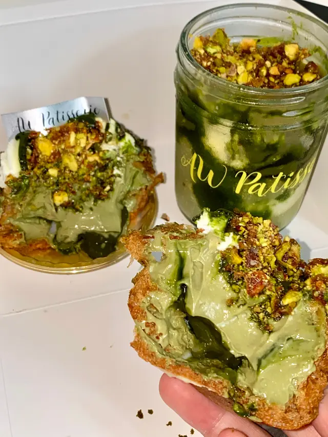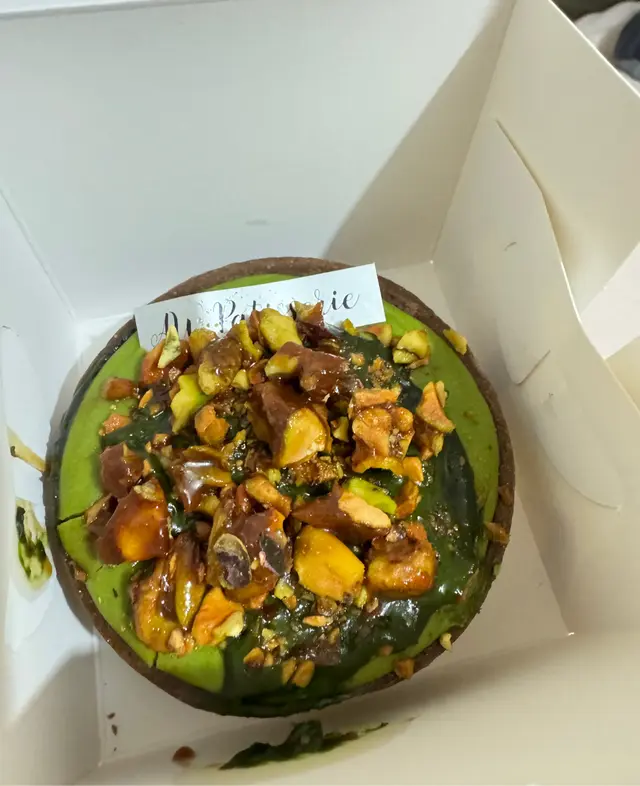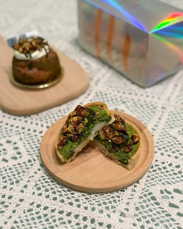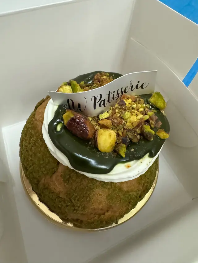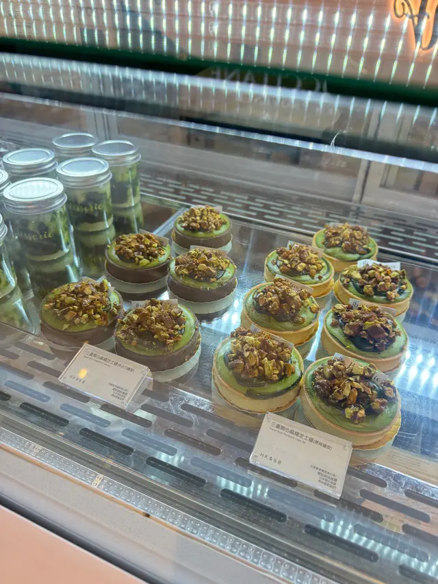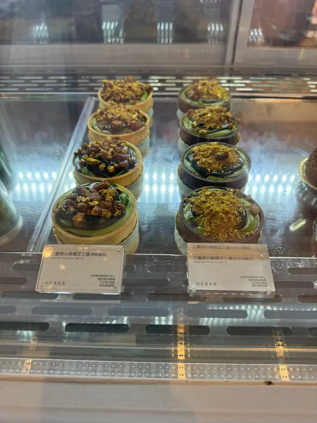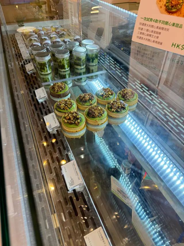 身為一個忠實嘅開心果粉,我已經嚟過呢間店幾次。試過佢大部份嘅開心果產品。啱啱試咗佢嘅開心果撻,簡直正到即刻要寫食評。開心果他層次好豐富有一個合格嘅餅底,可以揀朱古力或者原味,我驚朱古力搶咗開心果味,所以揀咗原味,不過不失。開心果醬味道都算幾濃,入邊嘅麻糬好煙靭,最正嘅當然係佢上面嘅自家製焦糖炒開心果碎!呢一堆開心果碎,簡直係佢呢間店舖嘅靈魂。之前食過佢嘅開心果盒,都俾佢上面嗰一堆開心果碎吸引住,其實下面嘅蛋糕,唔算有乜特別,不過都係好食嘅。佢嘅泡芙都唔錯,應該都係差唔多嘅開心果醬,味道都算濃郁。如果可以嘅話,我好想買一大杯自家製焦糖炒開心果碎返屋企🤣Read More