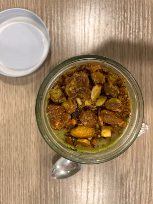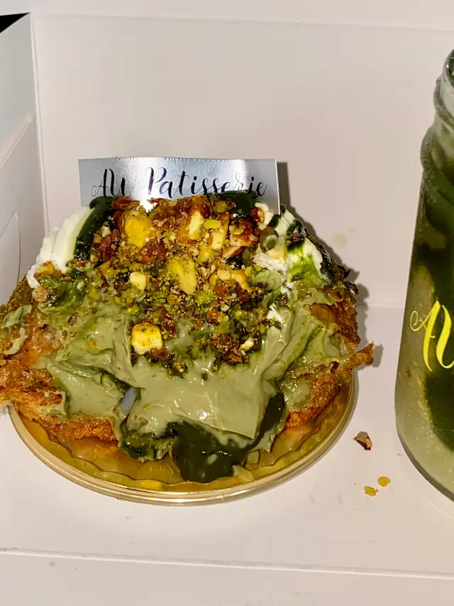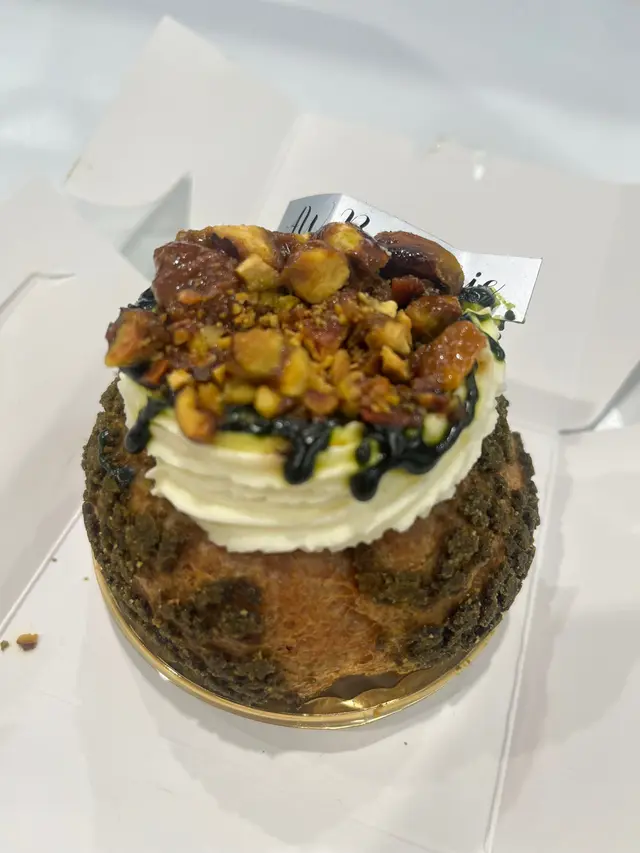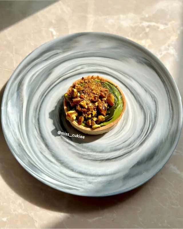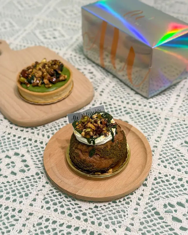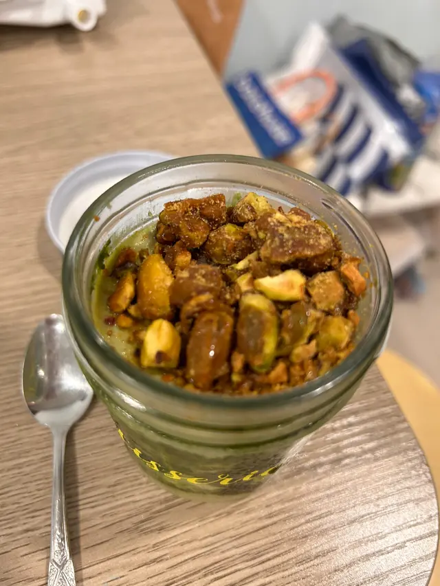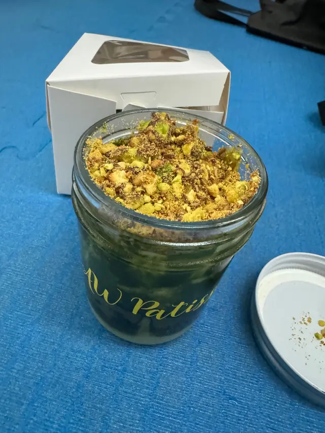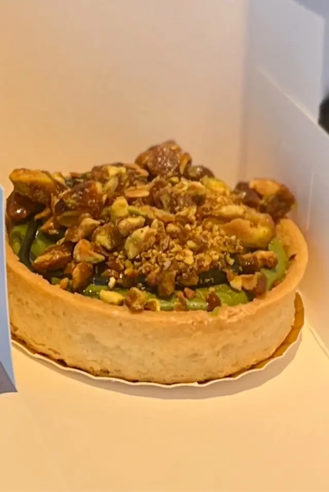 身為一個忠實嘅開心果粉,我已經嚟過呢間店幾次。試過佢大部份嘅開心果產品。啱啱試咗佢嘅開心果撻,簡直正到即刻要寫食評。開心果他層次好豐富有一個合格嘅餅底,可以揀朱古力或者原味,我驚朱古力搶咗開心果味,所以揀咗原味,不過不失。開心果醬味道都算幾濃,入邊嘅麻糬好煙靭,最正嘅當然係佢上面嘅自家製焦糖炒開心果碎!呢一堆開心果碎,簡直係佢呢間店舖嘅靈魂。之前食過佢嘅開心果盒,都俾佢上面嗰一堆開心果碎吸引住,其實下面嘅蛋糕,唔算有乜特別,不過都係好食嘅。佢嘅泡芙都唔錯,應該都係差唔多嘅開心果醬,味道都算濃郁。如果可以嘅話,我好想買一大杯自家製焦糖炒開心果碎返屋企🤣Read More