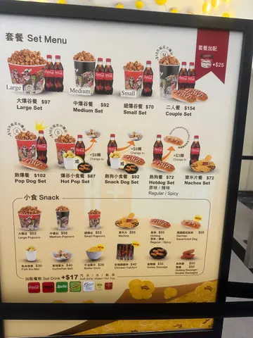 如题😂去搞笑嘅,好啦都试吓啦,爆谷香得来够林,老人家都啱食呀~肚饿嘅仲可以整个热狗,新鲜滚热辣~加埋杯即叫即针既汽水,简直冇得弹呀~果然系睇戏三宝~一个都不能少呀😂