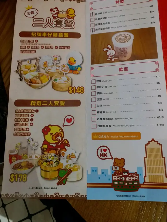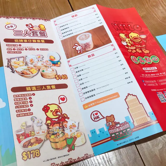 個個都知我係飲茶控又係B Duck迷,所以帶老公去左呢間以B duck做主題既茶樓,呢度真係我杯茶。一入門口就見到古色古香嘅中式茶樓裝修,再加上B duck做主題,真係非常之吸睛,用咗好多時間嚟影相打卡,未食先興奮。叫咗個《必食二人餐》,真係好有噱頭,大大碗嘅龍蝦車仔麵,有半隻波士頓隻龍蝦,夠大又夠肉,我真係冇食過龍蝦車仔麵,當然仲有其他配料加埋先叫做一碗稱職嘅車仔麵,例如生菜,豬皮,滷蛋。我老公個碗就係《招牌車仔麵》,豬皮、魷魚、雞中翼、魚蛋、蘿蔔、雞翼尖、豬大腸再加埋滷水蛋,非常之豐富,岩哂大食之人。《蝦餃》一上枱,就十分之吸晴,賣相又可愛,入口蝦味重,蝦餃皮十分煙韌。《沙嗲金錢肚》係我老公最愛,沙嗲味濃,牛肚夠爽夠煙韌。最後黎一杯凍檸茶,估唔到中式茶樓都有凍檸茶叫,真係十分之驚喜。…查看更多