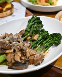 商场入面竟然有间工业风格嘅餐厅👍🏼佢唔净止喺一间汉堡店,入面仲有好多美式创新菜式🥩喺德福终于都有间似样嘅西餐🫣🎬 黑松露炒西兰花苗杂菌向来都钟意食西兰花🥦呢度个西兰花整出嚟嘅软硬度就好啱我,因为我唔太钟意食好腍嘅菜👍🏼带点松露嘅油香,去除西兰花嘅草青味😌𝄢..🎬 蛋酒吉士布丁事前无谂过佢会有造型🤭谂住净系一个布丁㗎咋😂可以自己注入吉丁酱,布丁口感非常滑溜creamy🍮饭后甜品可以share食比较好!𝄢..🎬 德州烧烤芝士牛肉汉堡嚟到就紧系要食汉堡喇🍔包身烘到外脆内软,亦系我比较钟意嘅口感👍🏼牛肉保持住少少湿润感,唔会太干身!酱汁比较惹味,古古惑惑咁仲收埋咗几嚿炸洋葱圈喺入面😆唔会太腬咁又几好!𝄢..🎬 美式烧烤酱手撕猪肉pizza一个口味特别少少嘅pizza🍕佢嘅pizza面包底比较重,会容易啲食饱😂虽然用咗烧烤酱,但系又唔会重味到好咸,仲用上咗几块泰式脆猪皮点缀一下😌𝄢..🎬 百福椒盐豆腐烟熏菠萝莎莎夹饼今期佢哋同百福豆腐crossover推出咗唔同嘅菜式🤟🏼呢个夹饼就系其中之一!整个夹饼都系脆身,而且都几清新感,配搭上都几特别🍍又唔会太重味!▫️以上食评为个人口味,只供参考▪️…查看更多