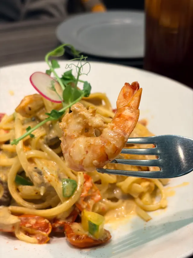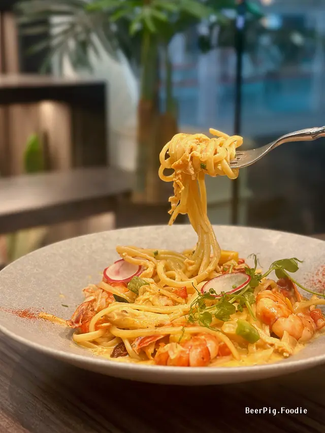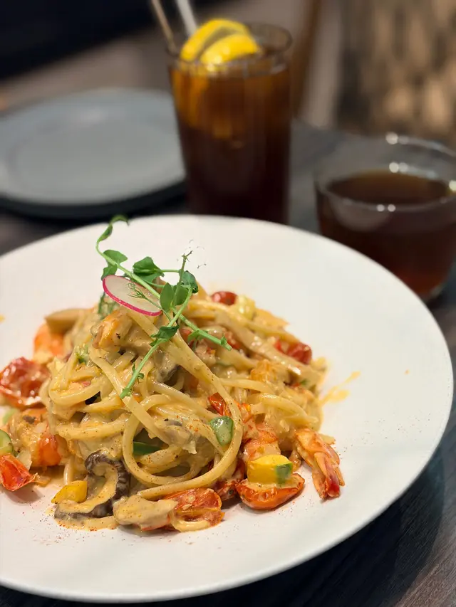 椰香冬陰功虎蝦雞肉扁意大利麵