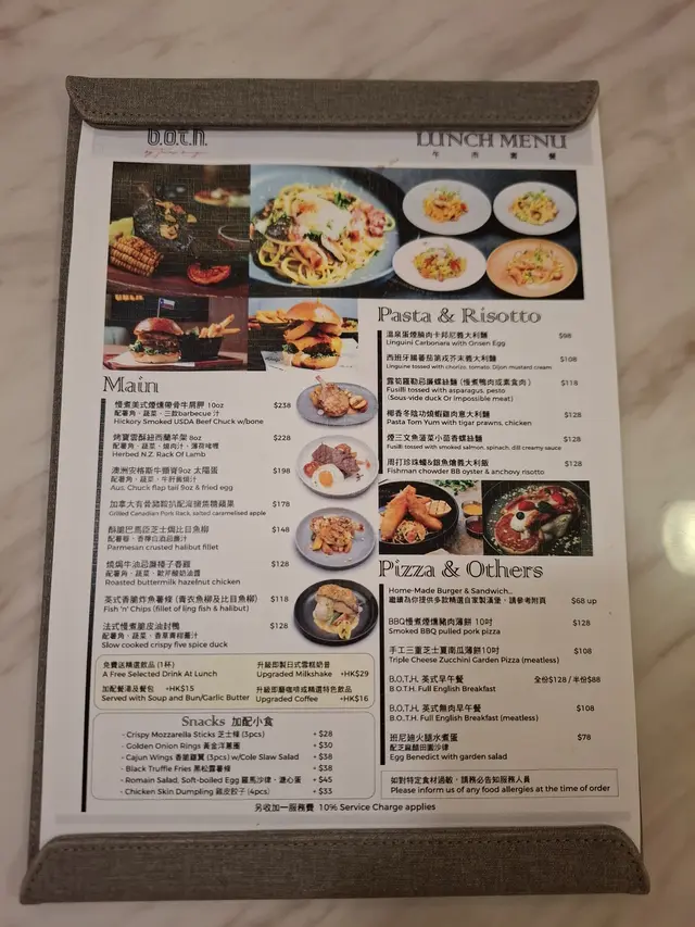 Burger🍔中間一定係夾漢堡 / 炸魚...?沙律碗只係配生果🍓🫐 • 蔬菜🥗...?奶昔🥤係生果 • 乳酪 • 牛奶🥛...?最近b.o.t.h. x 百福®既聯乘,推出左幾款加入豆腐既美食,健康又有創意💫岩晒要Keep Fit既朋友🙆🏻♀️~•~•~•~•~•~•~•~•~•~•~•~•~•~•~•~•~•~•~• ▪百福豆腐牛油果燒南瓜乳酪燕麥沙律碗 ($98)依碗推介❣️每日都要食多種唔同顏色既蔬菜🌈用左百福鹽滷硬豆腐(外脆 • 有咬口)。FreshFresh既味道,甜甜燒南瓜🎃配住乳酪 • 燕麥脆脆,fresh得黎滿滿飽足感🤰🏻.☀️ Lunch Menu ☀️▪慢煮美式煙燻帶骨牛肩胛10oz 配薯角 • 蔬菜 ($238)表面煙燻香氣幾出,牛肉慢煮得軟嫩🐃配埋炸薯角 • 多種蔬菜(粟米🌽 • 意大利瓜🥒...),份量十足。有3款醬汁(芒果醬🥭 • 美式燒烤醬🔥 • 秘製醬). ▪煙三文魚菠菜小茴香螺絲麵 ($128)Creamy忌廉汁,煙三文魚🐟 • 菠菜外,仲有配多種配料(甜椒🫑 • 蕃茄仔🍅...).▪加配餐湯 & 餐包 (加+$15) 濃稠蘑菇湯🍄🟫▪加配小食 - 香辣雞翼🐥 • 3pcs (加+$38) 外皮脆卜卜,配菜絲沙律🥗解解油膩感.▪野飲▫️荔枝茉莉花梳打 (加+$16) 生果與 • 花茶香氣結合,清新清爽🍹▫️熱 • 鮮奶咖啡 (加+$16) 拉花飲到低都仲Keep到☕️.~•~•~•~•~•~•~•~•~•~•~•~•~•~•~•~•~•~•~• 🔺以上價錢 💁🏻♀️需另加𝟏𝟎% 服務費🔺Menu有素食選擇🌱~•~•~•~•~•~•~•~•~•~•~•~•~•~•~•~•~•~•~• …查看更多