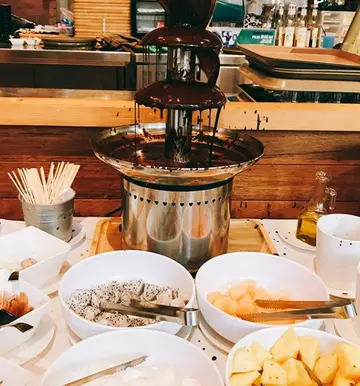 呢间位于荃湾8咪半既backyard tea Buffet 几抵食 一个人一百蚊都唔洗行ikea行到累累地可以坐底叹下再走场内都好多一家大细行完街一袋二袋有热食沙律甜品重有朱古力喷泉如果同小朋友黎一定有惊喜重有好多生果提供虽然唔可以同几百蚊既贵妇下午茶比但胜在价比性高另有咖啡☕️热柠茶水供应一家大细行完街同想同朋友揾个地方坐下都可以黎坐得舒服又唔贵但系场内既员工就唔算好友善 可能因为佢地就黎完下午茶时段 比较多野做同埋食物refill得比较慢